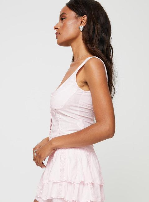 Crop top Round neck, front button fastening, shirred back, fixed shoulder strap Non-stretch, partially lined Princess Polly Lower Impact Main: 100% LIVAECO viscose, lining: 100% organic cotton, trim: 100% cotton Cold gentle machine wash
