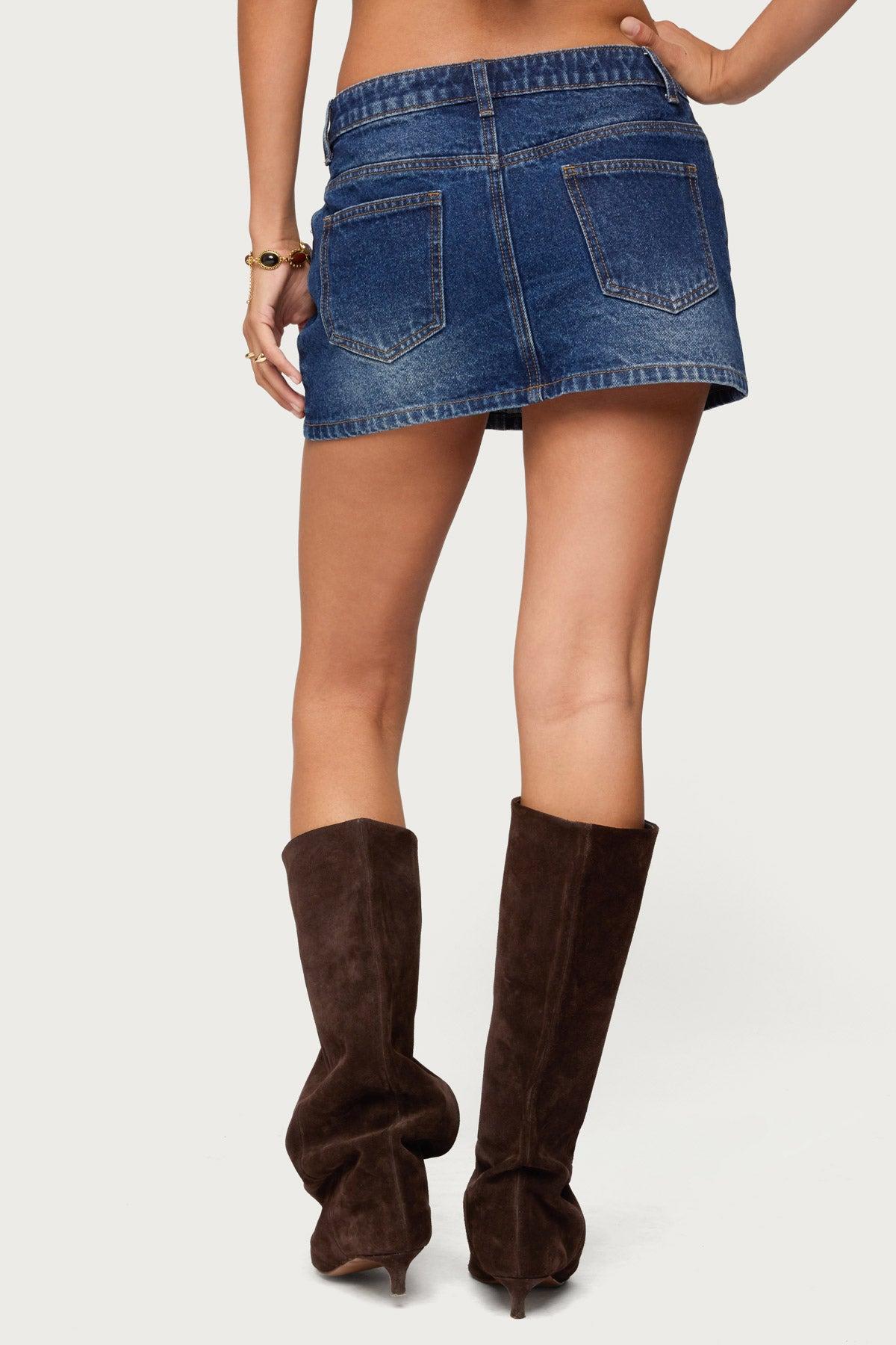 Micro skirt Front & back pockets Front zip & button closure Low rise waist Denim fabric 100% Cotton Model wears size S Model height is 5'9 Item care: Machine wash at maximum 30ºC, do not bleach, tumble dry low, iron at a maximum of 110ºC, do not dry clean