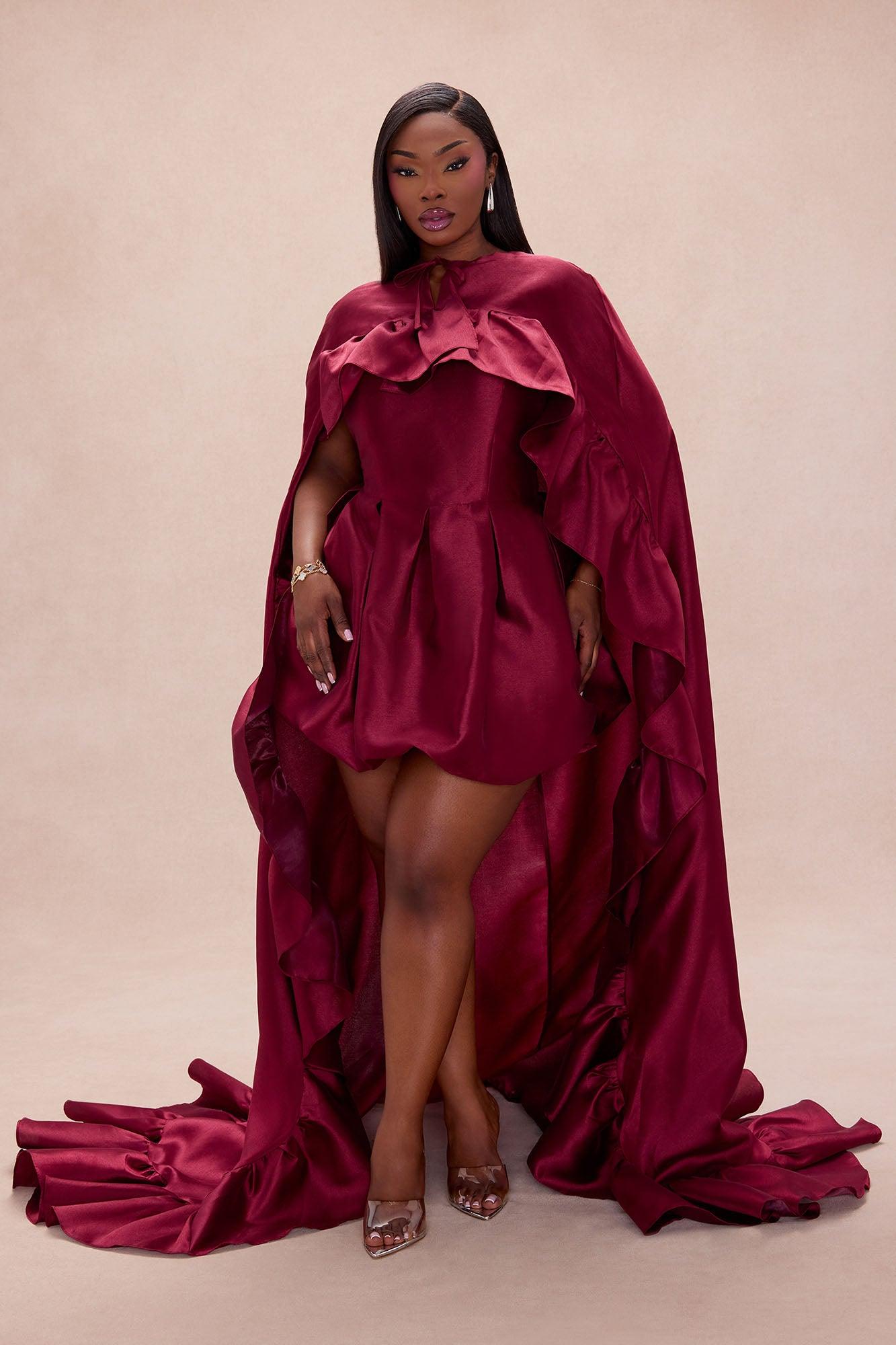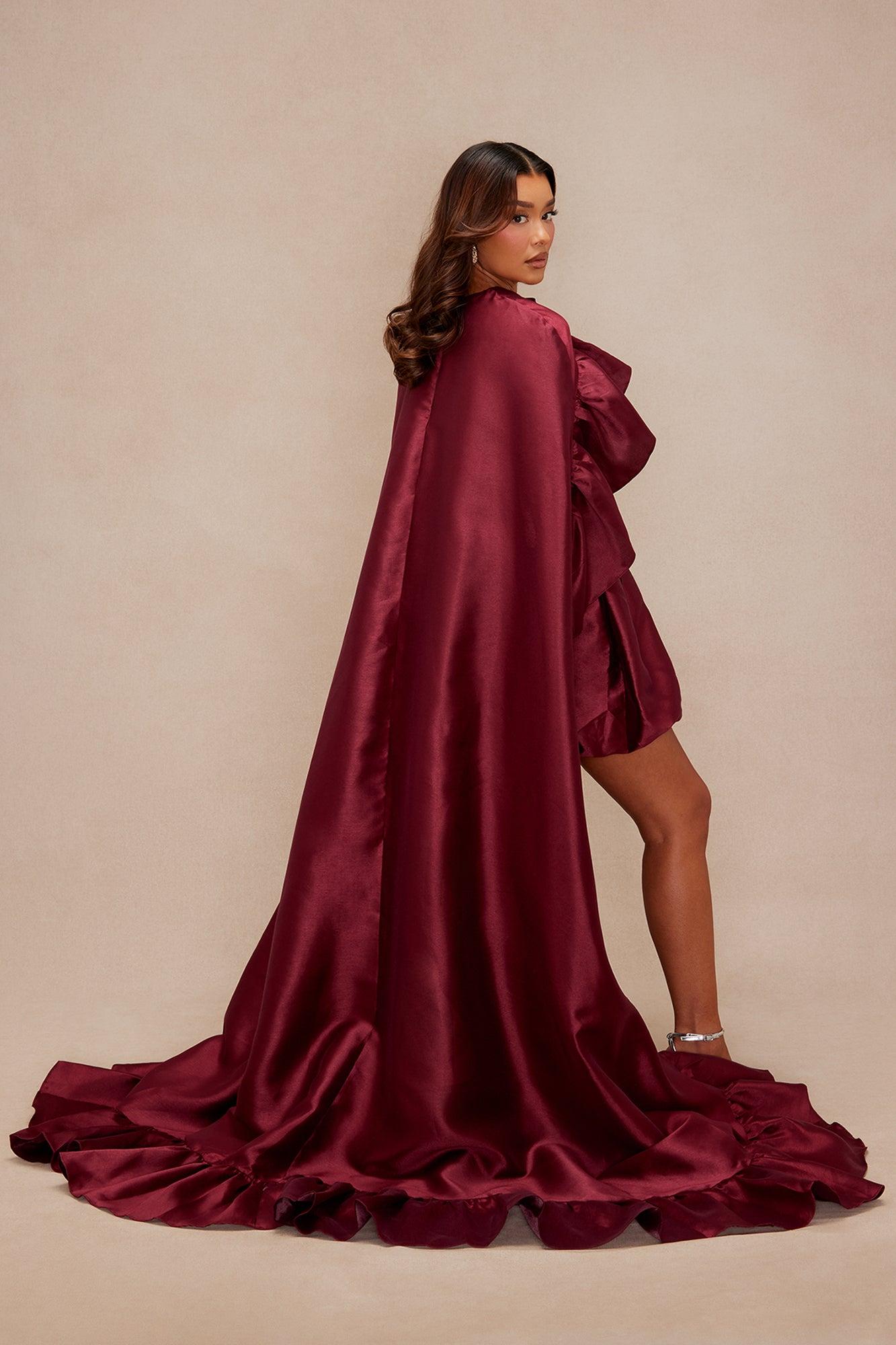 Chic Drama 2 Piece Cape Mini Dress Set - Burgundy Female