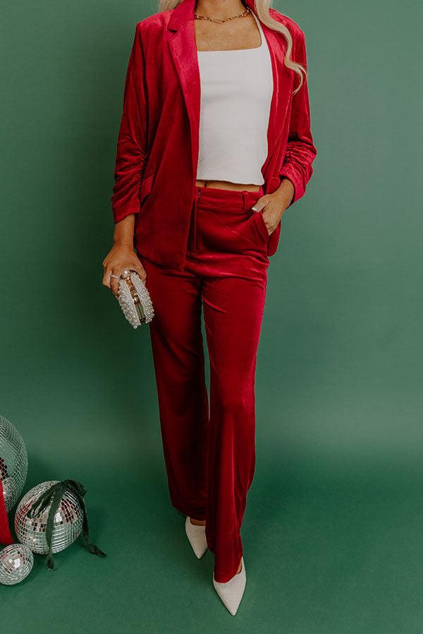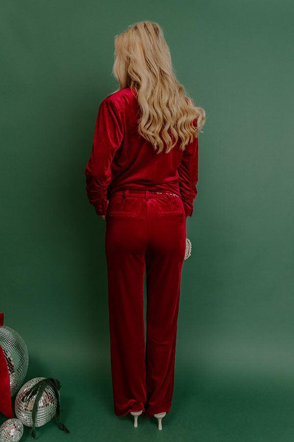 - Velvet dreams do come true with these fabulous pants! Their chic vibe and timeless style make them a total must for luxe fashion moments. - A waistline with belt loops and an elastic back - A hidden zip fly and hook and eye closure - Functional side pockets - Faux pocket cuts on the back - A relaxed silhouette that ends in straight hemlines