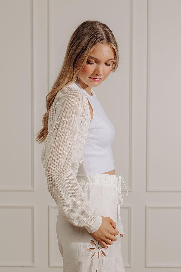 - This breezy shrug pulls everything together with ease. It's the perfect layer for finishing off your trend-forward looks. - Unlined knit material - An open, draped neckline - Long sleeves - A cropped shrug with a draped hemline - One size fits most