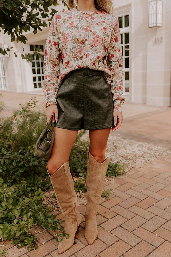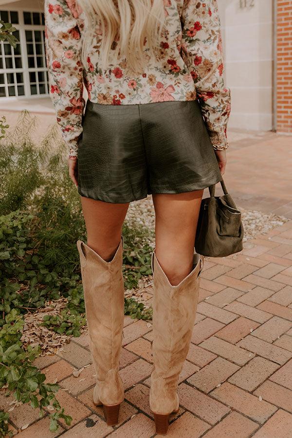 - Make your OOTD pop with these chic faux leather shorts! Perfect for adding a trendy, effortless vibe to any outfit. - Unlined scale textured faux leather material - Belt loops - A hidden zip fly, interior button closure, and hook and eye closure - Pleated accents - A relaxed silhouette that ends in straight hemlines