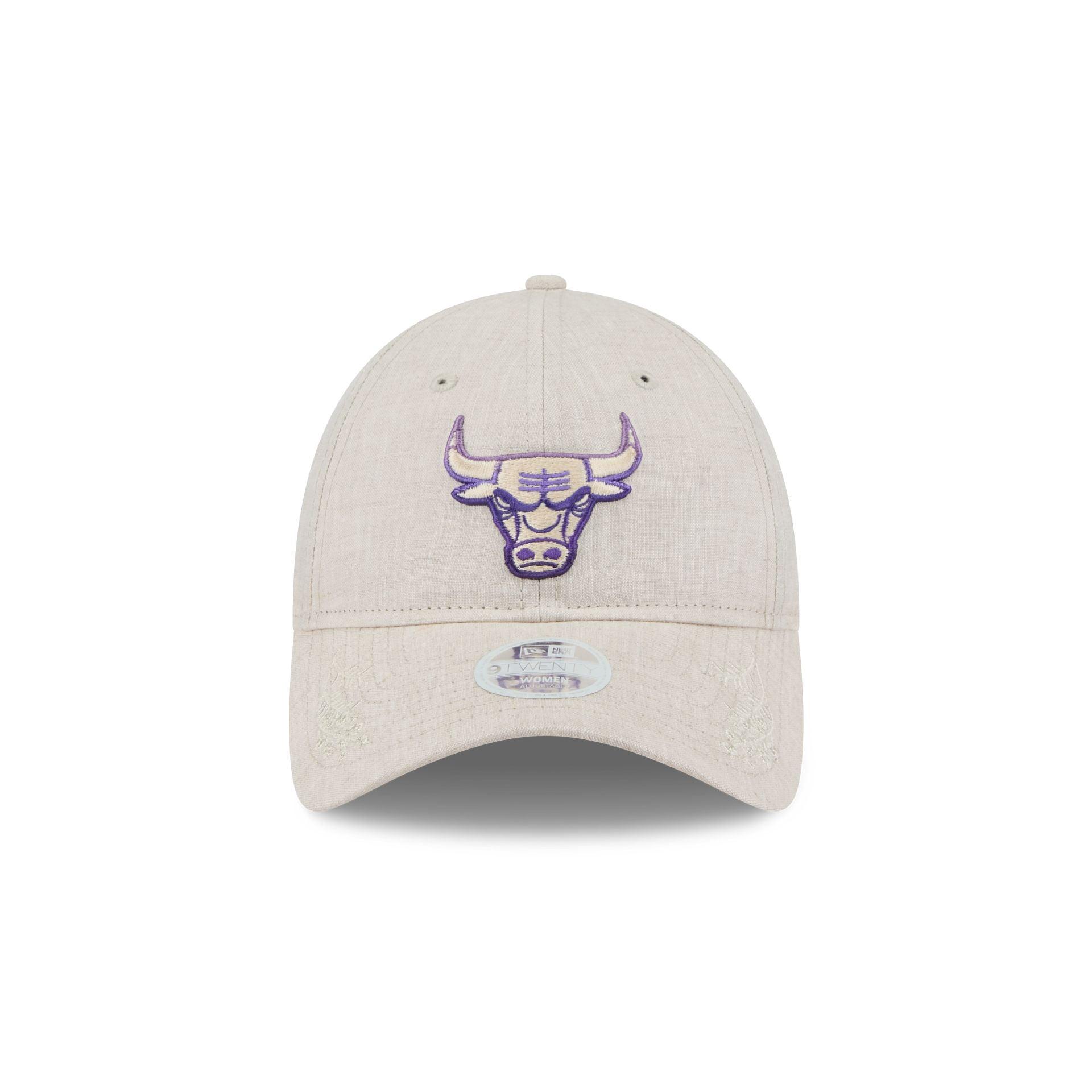 The Chicago Bulls Floral Women's 9TWENTY Adjustable Cap features an embroidered Bulls purple gradient logo at the front panels with mimosa flower details at the visor and an adjustable D-Ring closure at the rear.