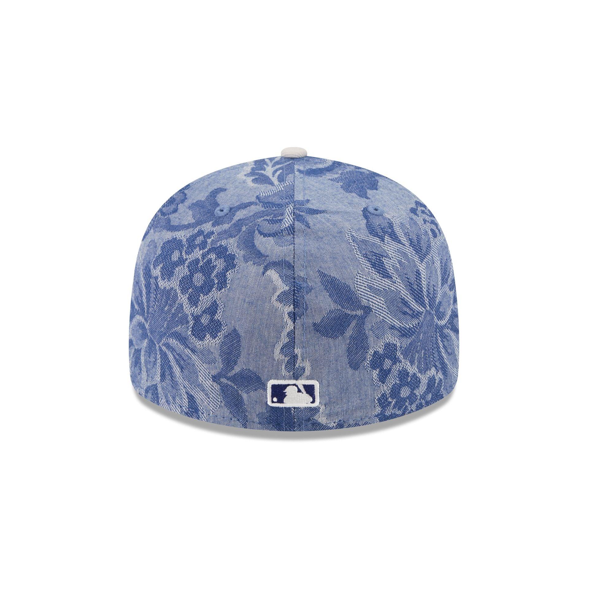 The New York Yankees Two-Tone Denim 59FIFTY Fitted Cap features an embroidered Yankees Cooperstown logo at the front panels against a specialty Japanese milled gobline chambray fabrication from Three Looms Japan Fabrics throughout the cap. Additional details include an MLB Batterman logo at the rear and a gray undervisor.
