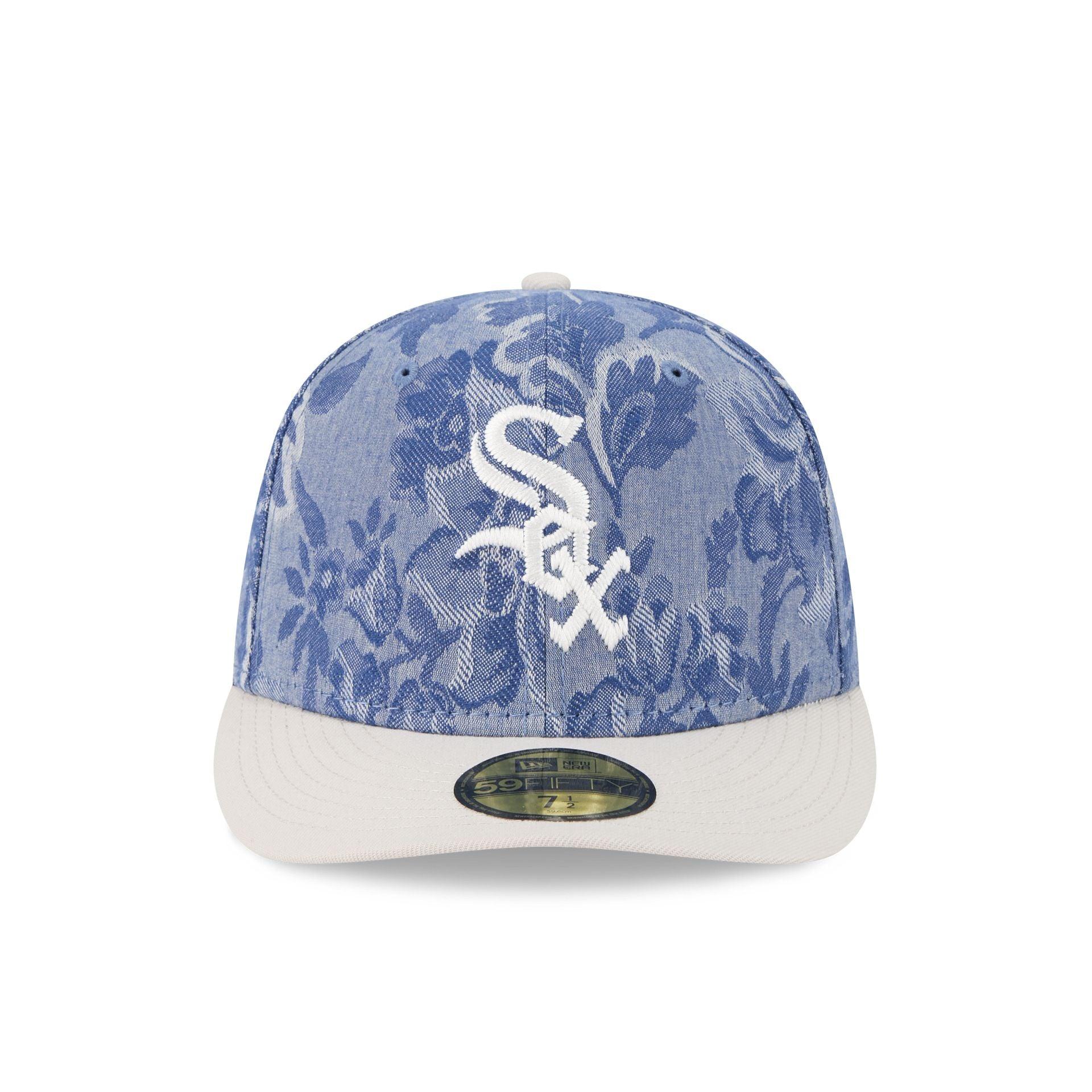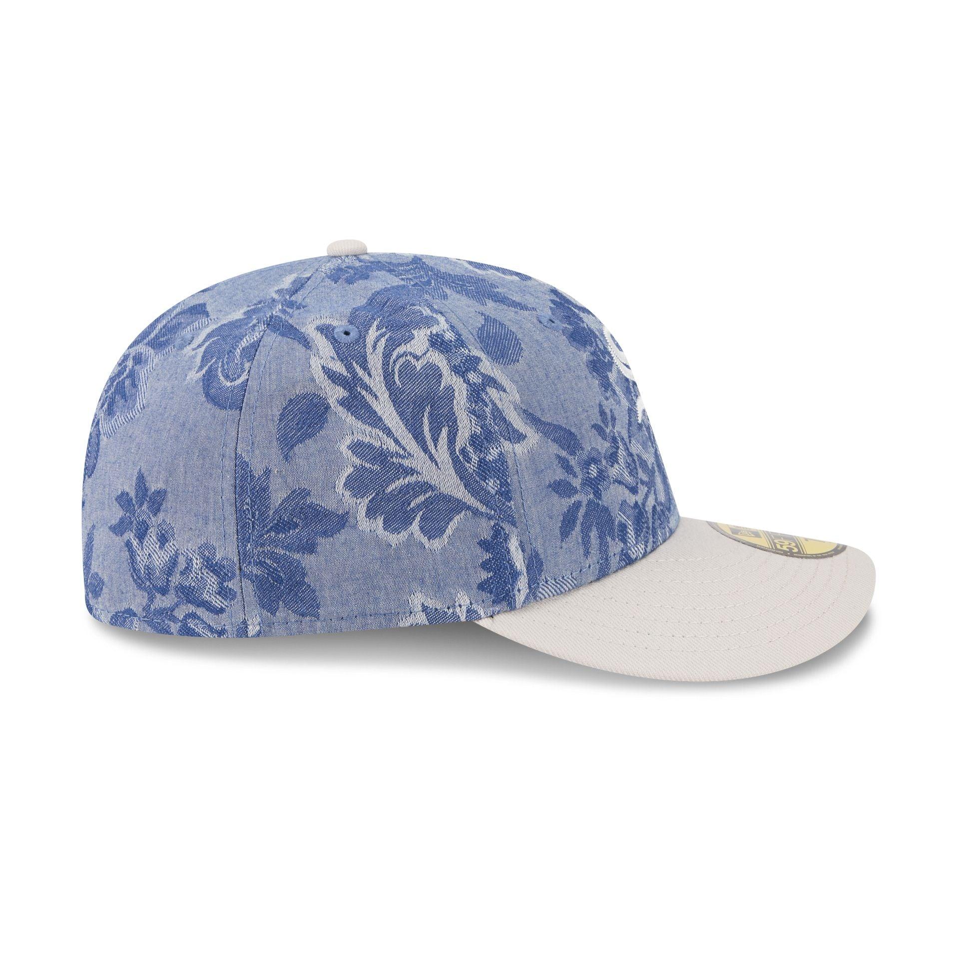 The Los Angeles Dodgers Two-Tone Denim 59FIFTY Fitted Cap features an embroidered Dodgers logo at the front panels against a specialty Japanese milled gobline chambray fabrication from Three Looms Japan Fabrics throughout the cap. Additional details include an MLB Batterman logo at the rear and a gray undervisor.