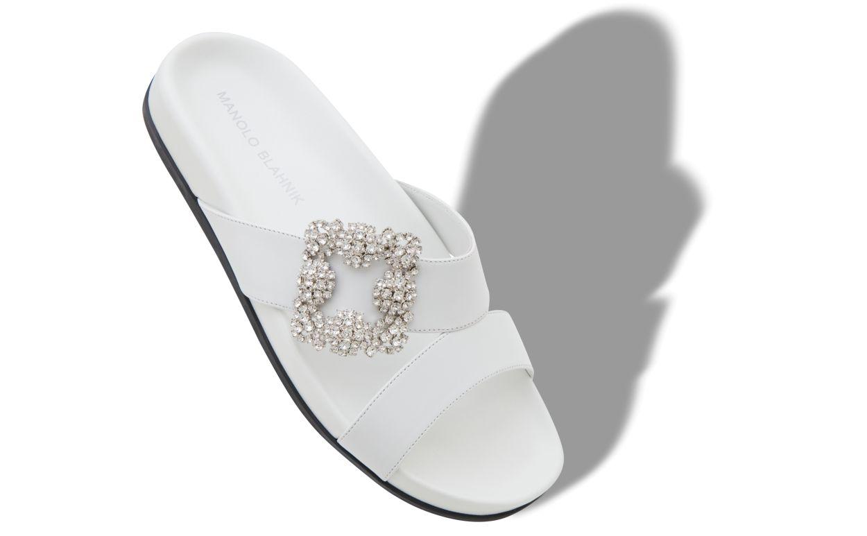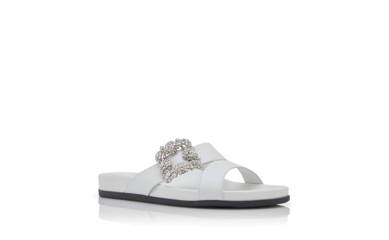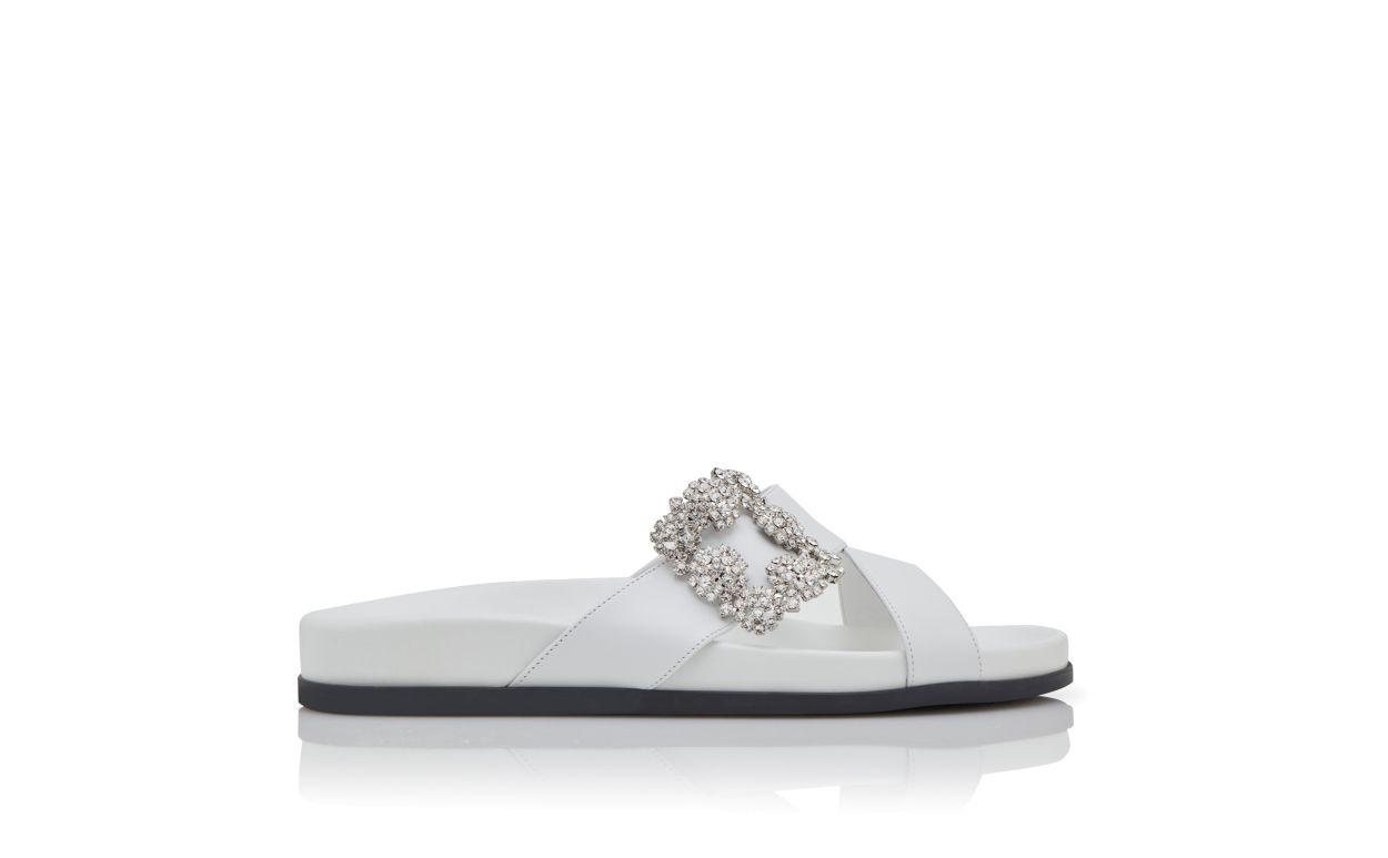 CHILANGHI White Calf Leather Jewel Buckle Flat Mules