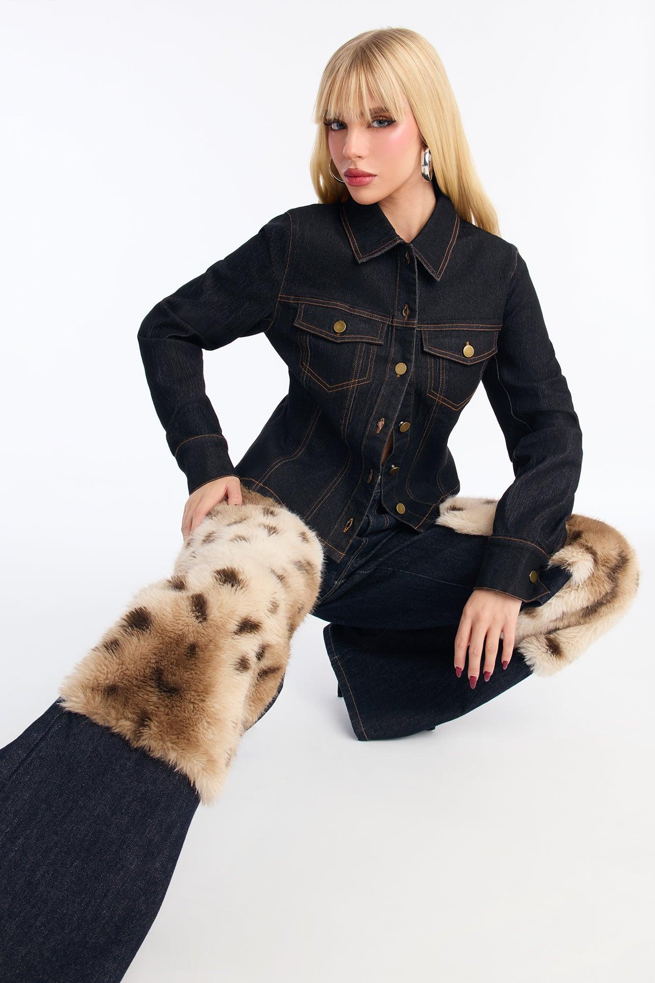 Chill & Relax Faux Fur Trim Jeans - Dark Denim Female