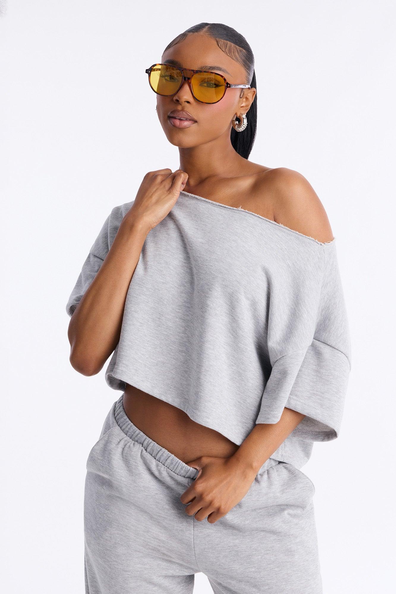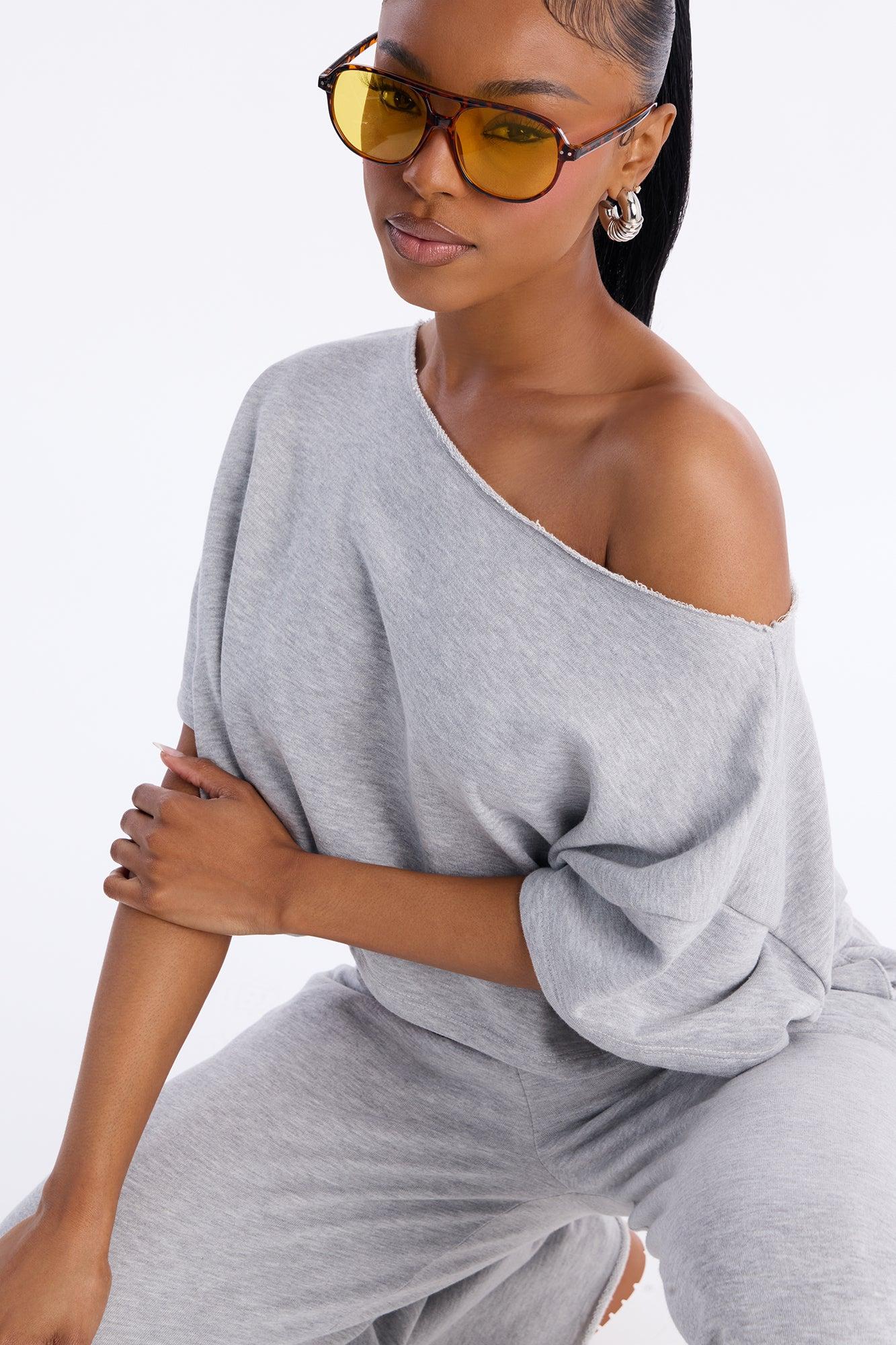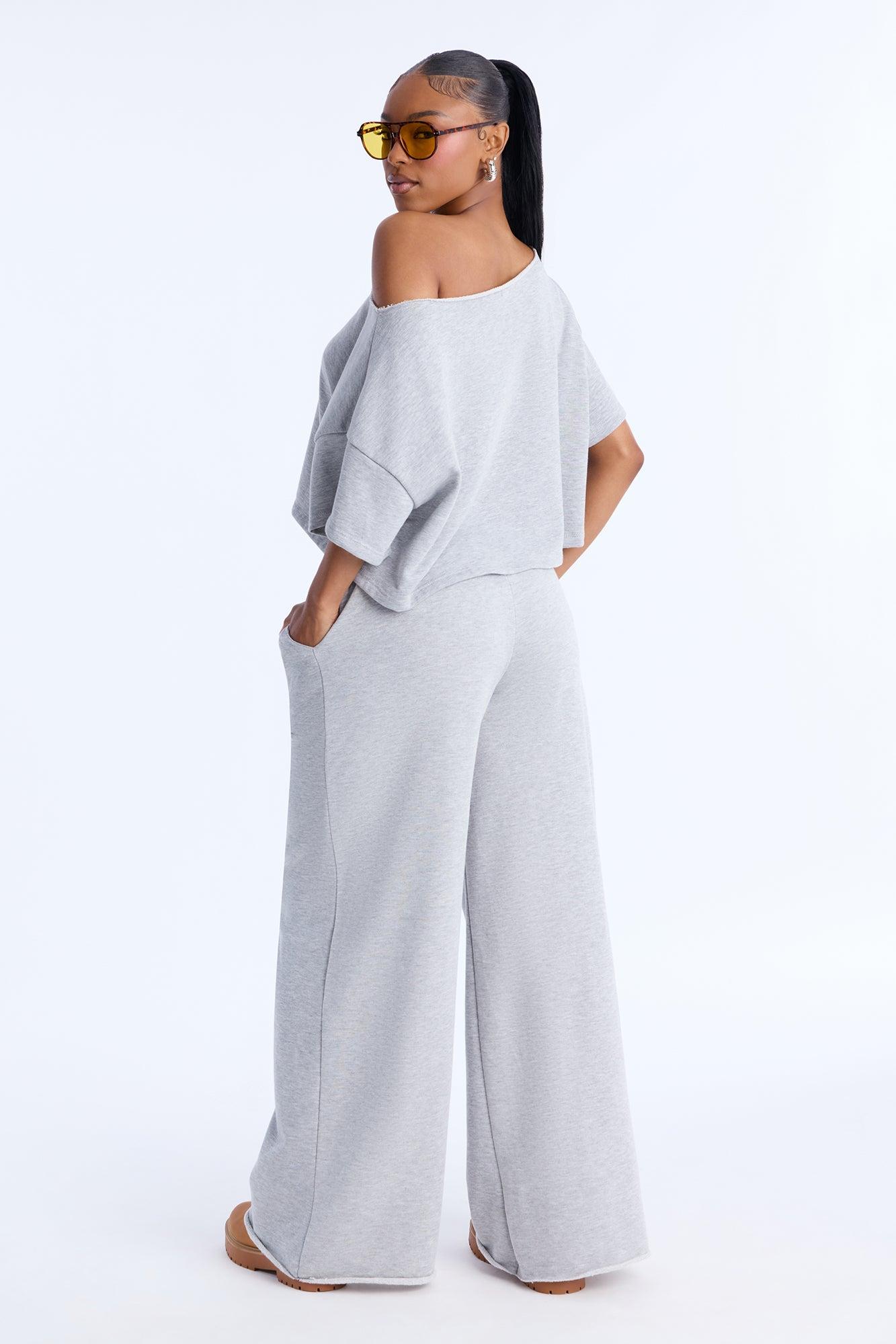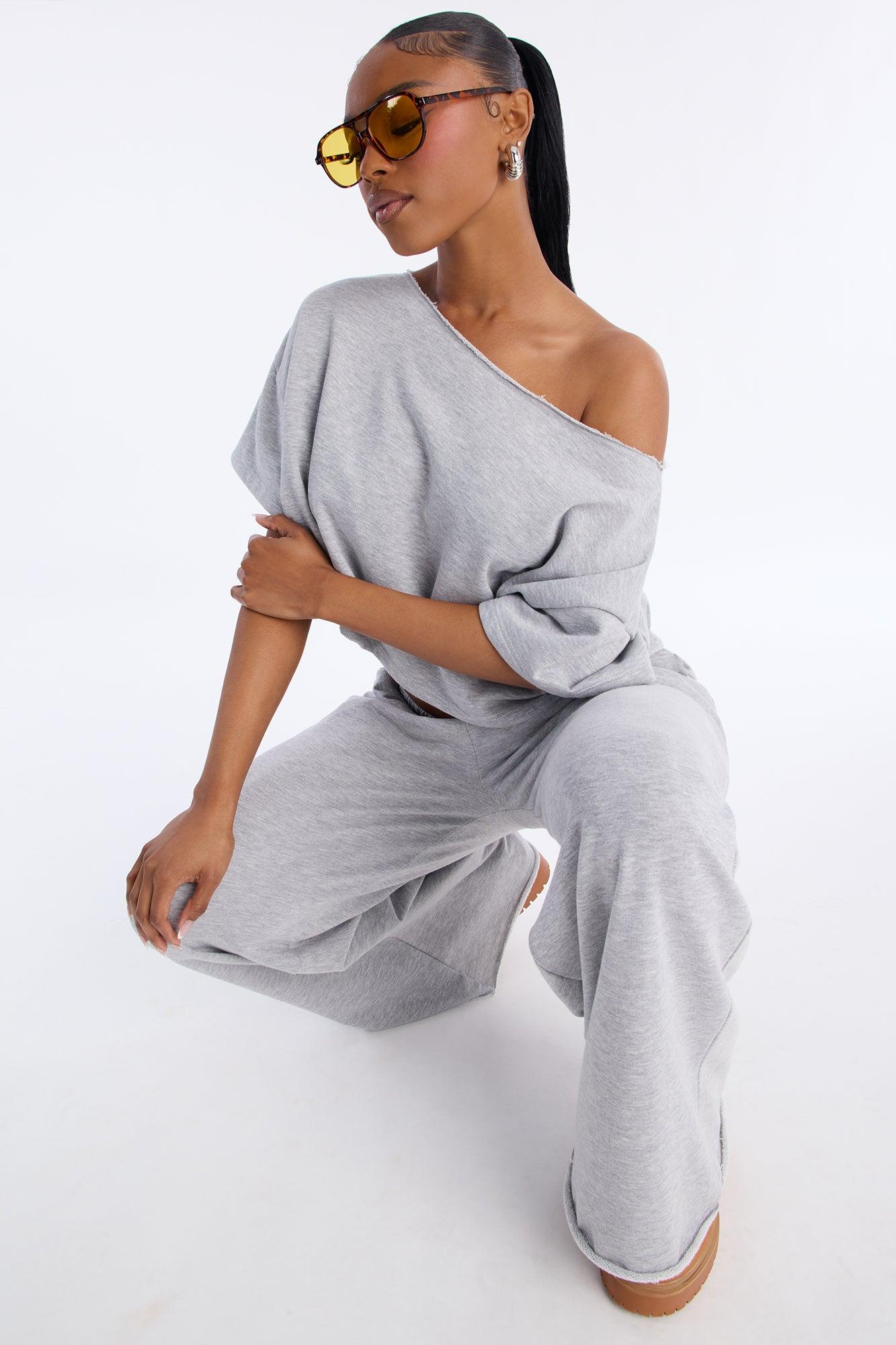 Chill Status Off Shoulder Pant Set - Heather Grey Female
