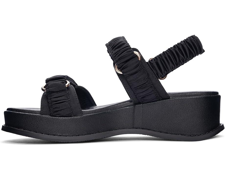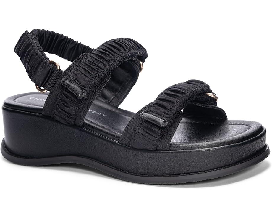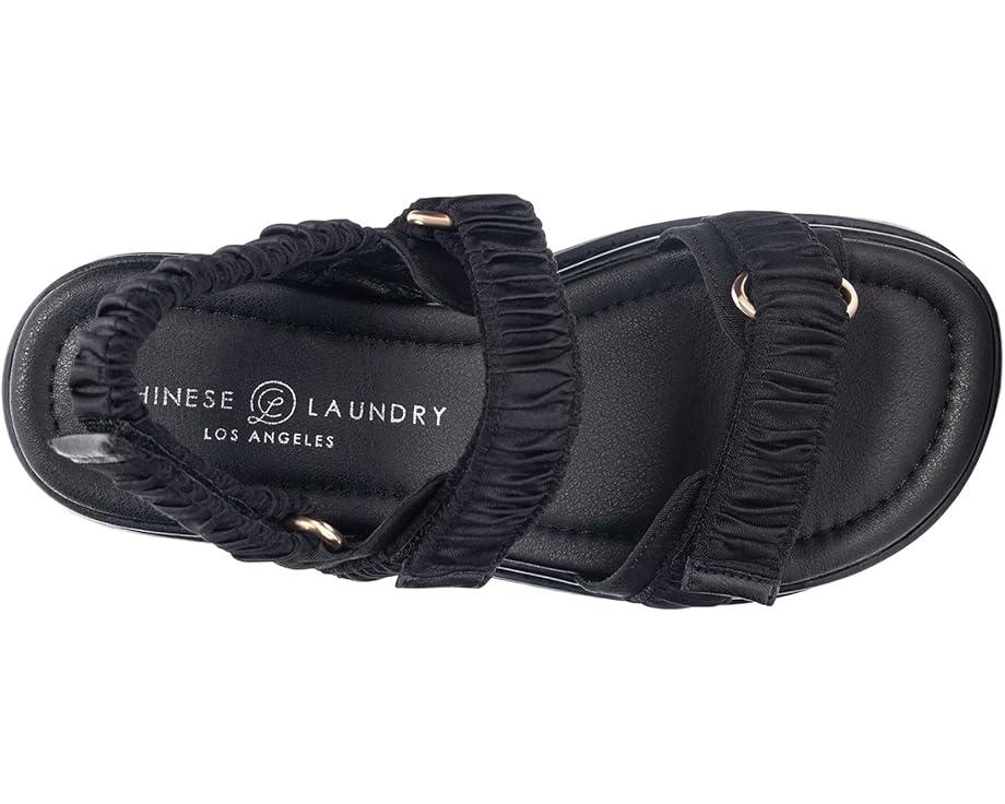 Get hold of the Chinese Laundry® Cashy Platform Sandals today and enjoy a chic yet comfortable style no matter where you go! Elevated by a cushioned demi wedge heel for a fanciful style, the shoes feature a three-strap ruched satin upper with three adjustable hook-and-loop closures. The interior is lined with a breathable polyester and comes set on a padded faux leather insole for all-day comfort.