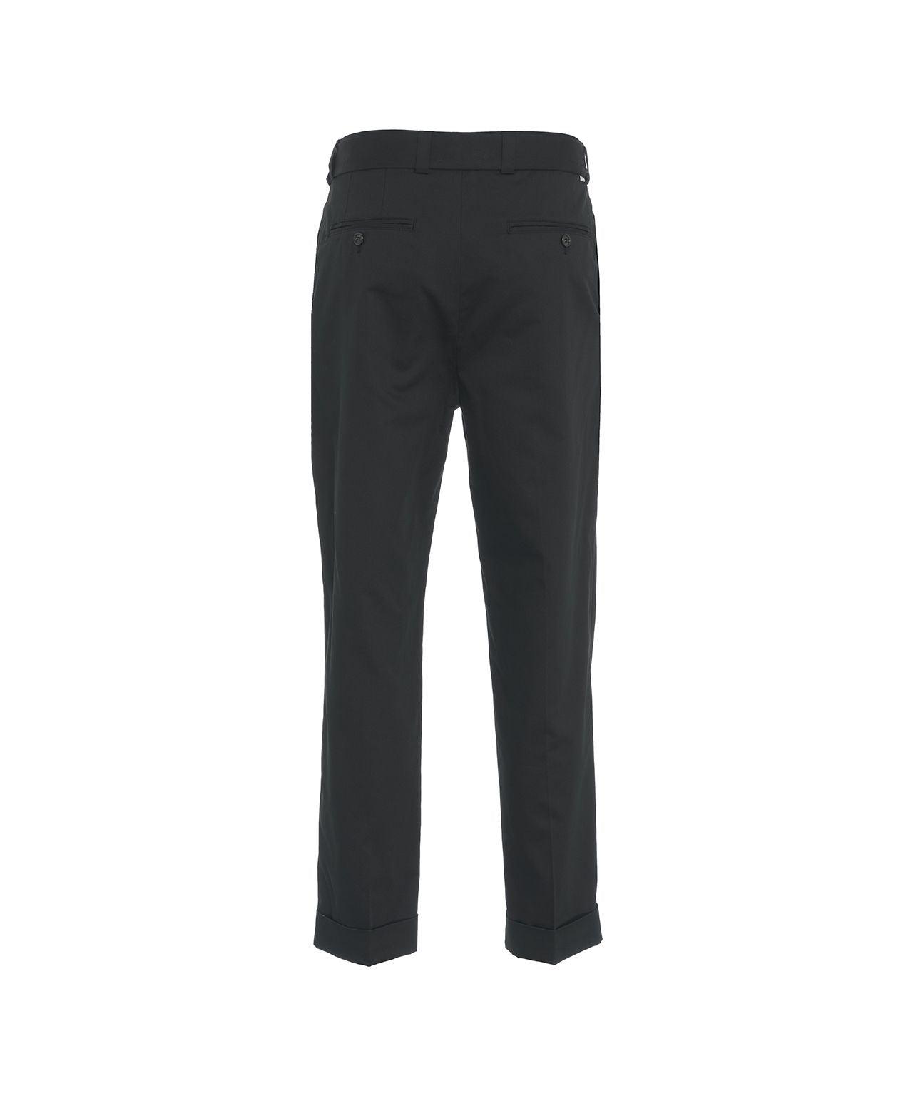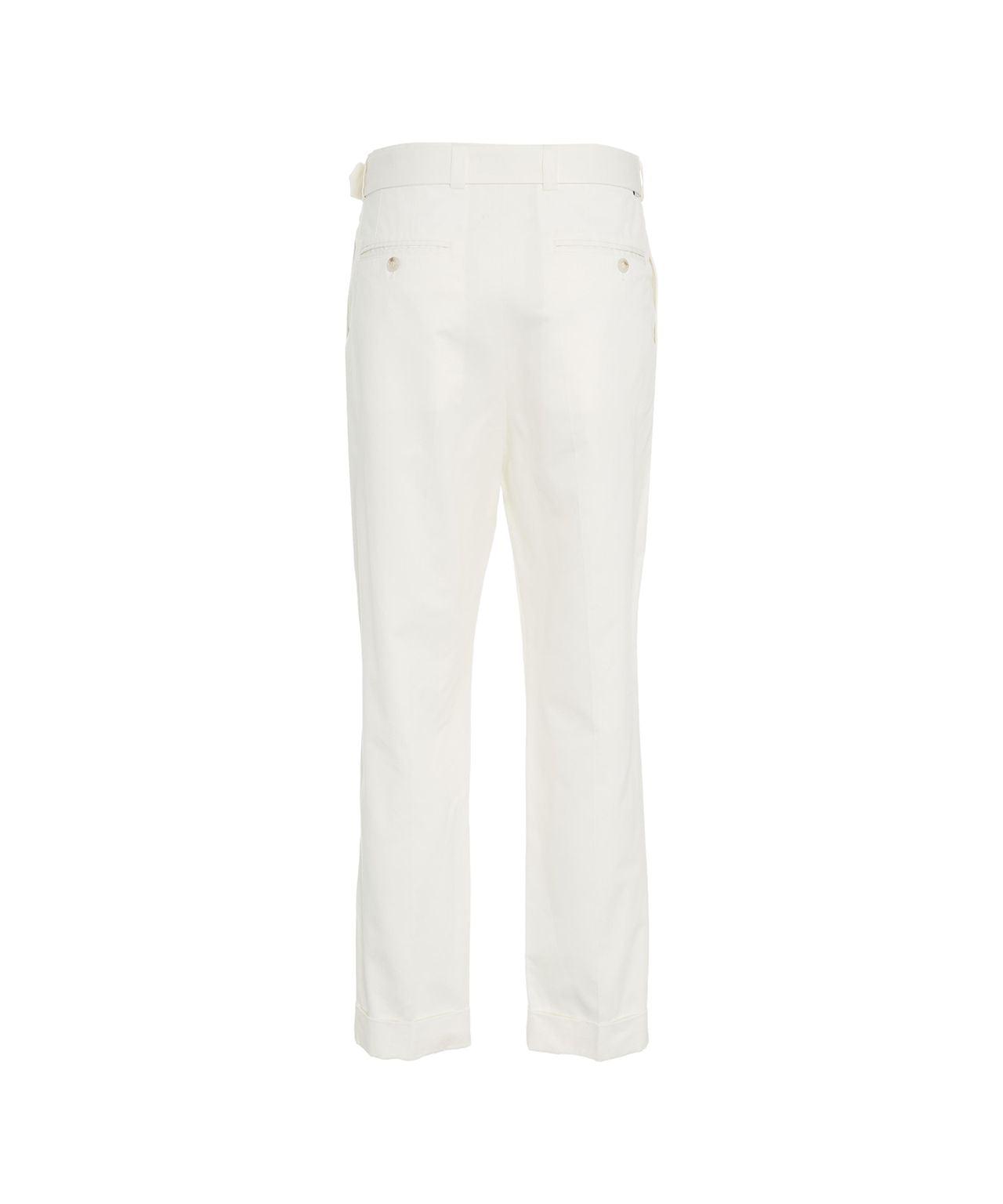 Belt loopsPleatsRolled-up cuffsTaperedLogo tagBack lined pockets with button closureConcealed hook, button and zip closureSilver coloured metallic detailsSlip pocketsBelt with buckle