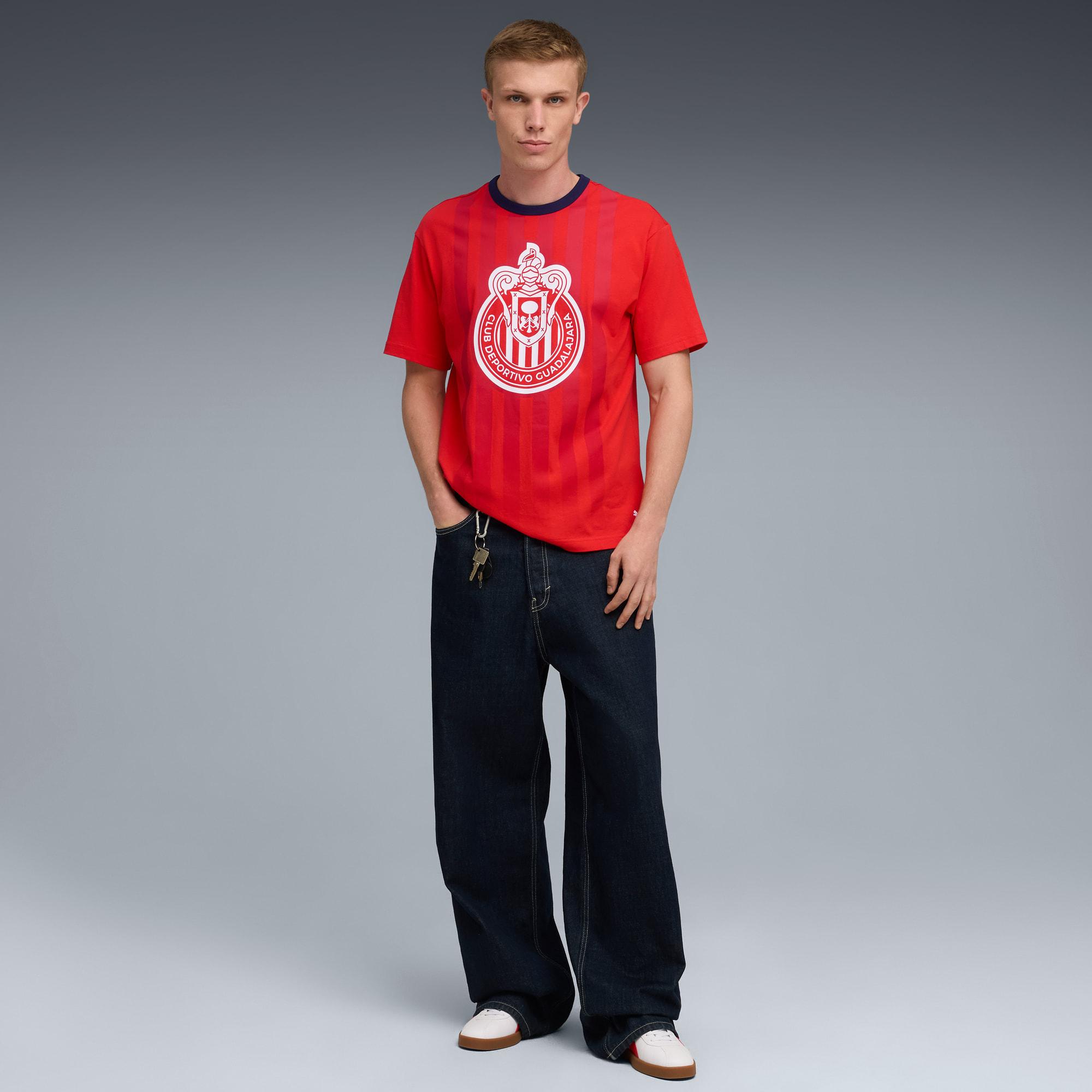 descriptionShow your team pride in laid-back style. Made with soft jersey fabric, this tee provides all-day comfort whether you're at the game or hanging out with friends. Bold Chivas branding brings undeniable energy, making it perfect for showing your passion. PUMA quality meets soccer spirit—ready to win big.Style: 786006_11Color: PUMA Redmeasure & sizeModel informationModel is 6' 2" tall and is wearing size M.detailsFit: RelaxedMain Material: Single jerseyNeck: CrewShort sleevesmaterials & careMaterial informationShell: 100% cottonRib: 71% cotton, 29% polyesterCare instructionsUse only mild detergentWash separatelyDo not iron printWash and iron inside outExclusive of Decoration