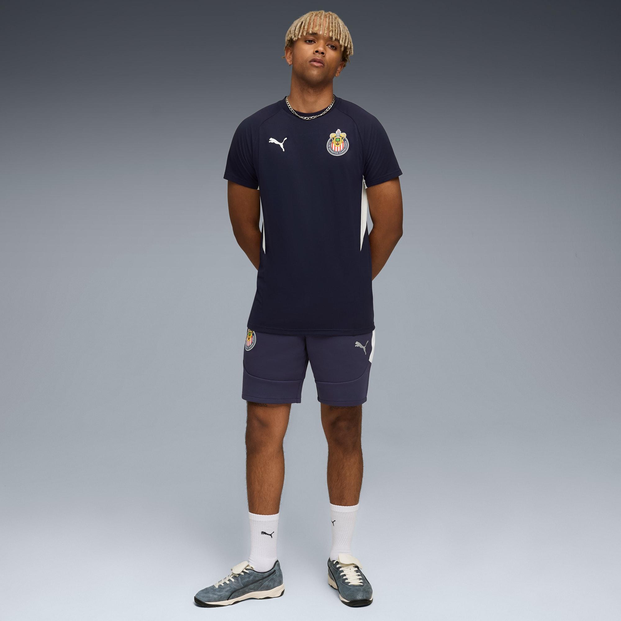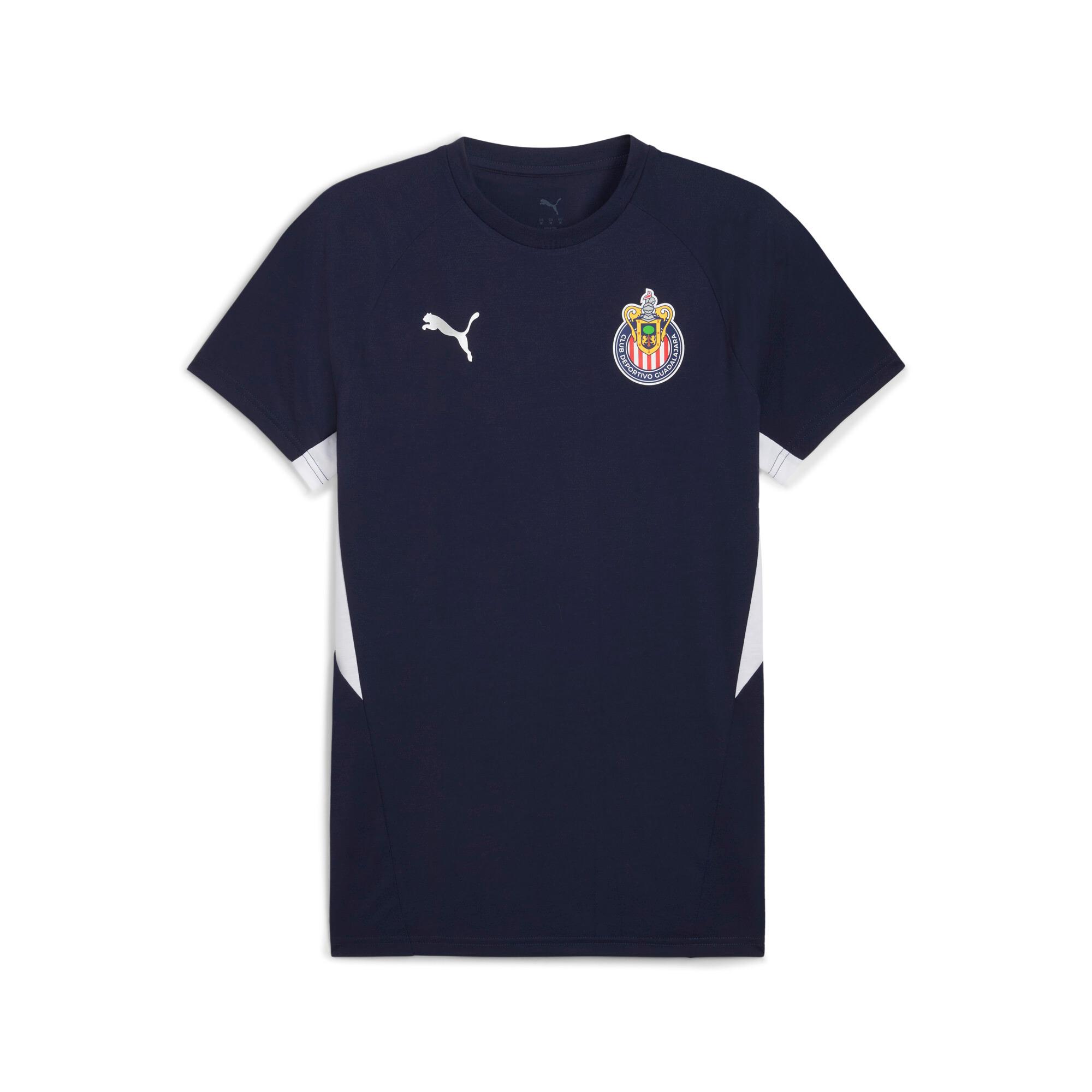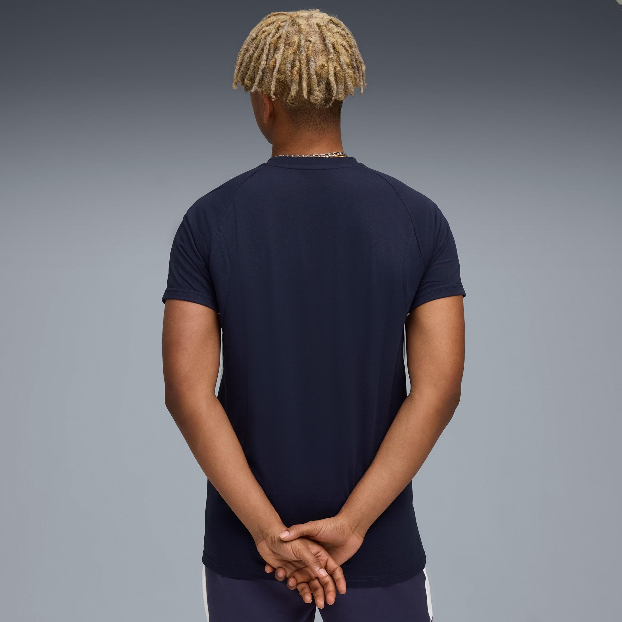 descriptionThe club's EVOSTRIPE collection blends true aesthetics with performance-ready designs. With streamlined cuts and lightweight materials, this collection lets you represent your colours with effortless confidence, whether training or on the move.Style: 782113_02Color: PUMA Navy-PUMA Whitemeasure & sizeModel informationModel is 5' 12" tall and is wearing size M.features & benefitsdryCELL: Highly functional materials draw sweat away from your skin and help keep you dry and comfortable during exerciseMade with at least 50% recycled materials.detailsFit: SlimMain material: Single jerseyNeck: Crew neckShort sleevesLength: RegularClub and PUMA branding detailsmaterials & careMaterial informationShell: 65% polyester, 35% viscoseRib: 70% cotton, 30% polyesterCare instructionsExclusive of DecorationWash and iron inside outUse only mild detergentDo not iron printWash with similar colours