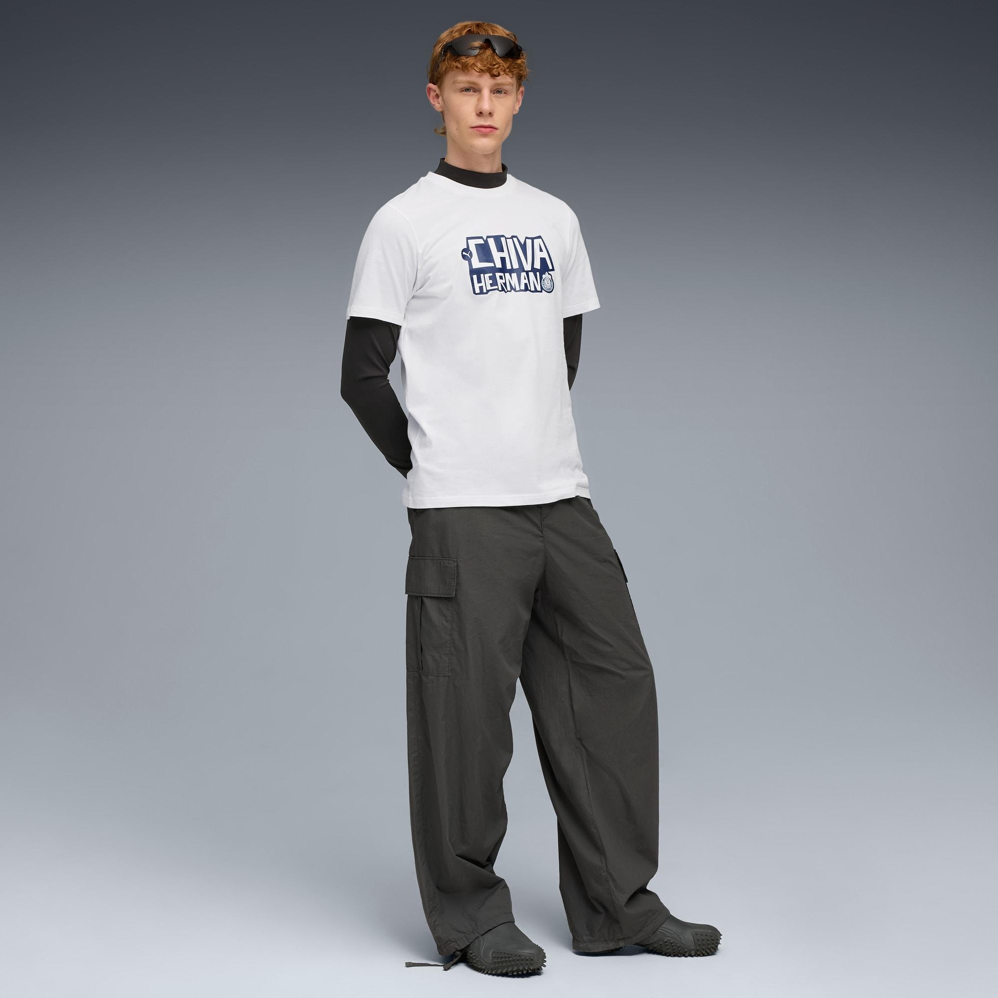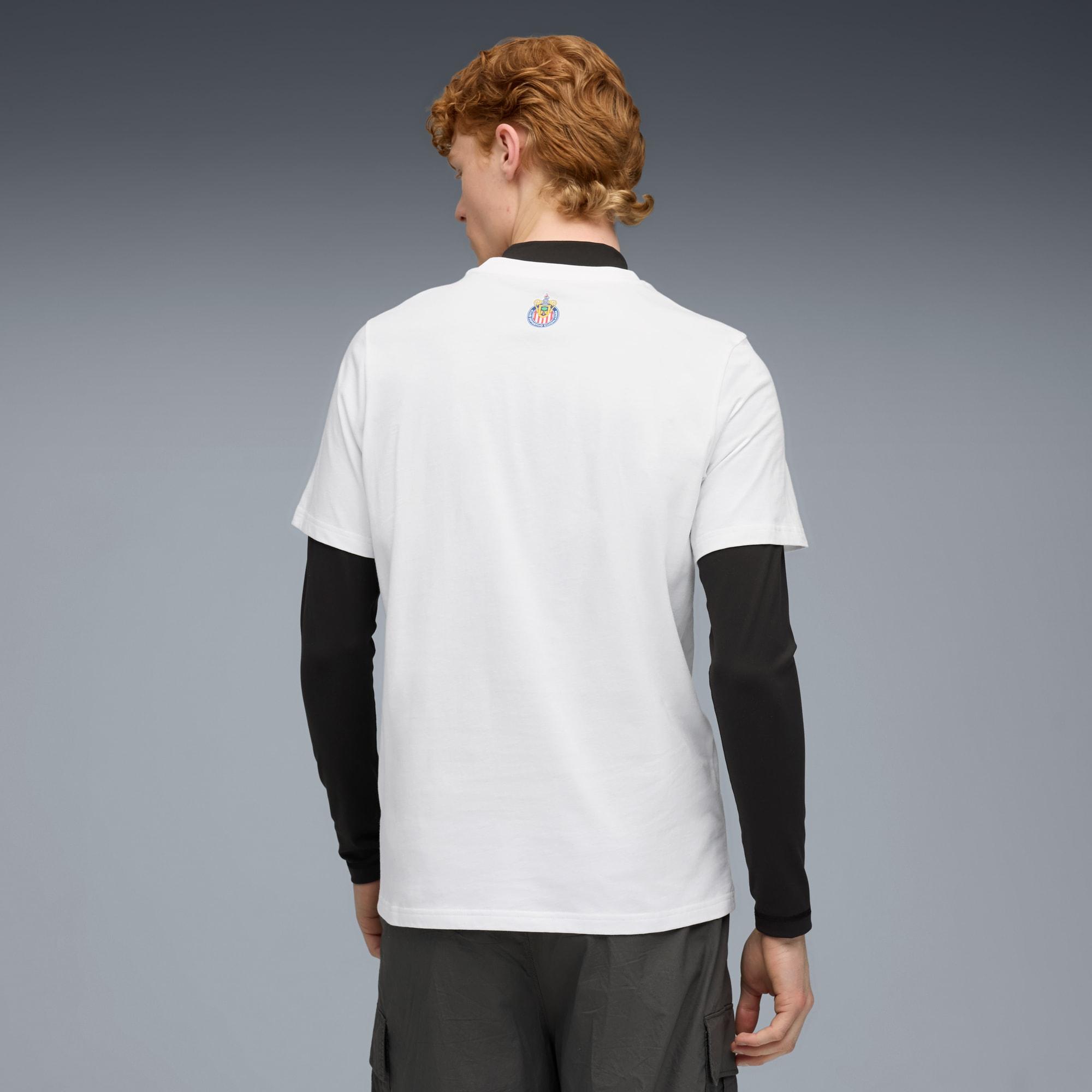 descriptionThe FtblCULTURE collection is a fusion of fashion and football, celebrating the club’s heritage and timeless style. With bold designs and a focus on the club's rich history, this collection brings together culture, loyalty, and performance. Wear it with pride and show the world that your connection to your colours goes beyond the pitch.Style: 782114_07Color: PUMA White-PUMA Navymeasure & sizeModel informationModel is 6' 1" tall and is wearing size M.features & benefitsMade with at least 20% recycled cotton.detailsFit: RegularMain material: Single jerseyNeck: Crew neckShort sleevesLength: RegularClub and PUMA branding details