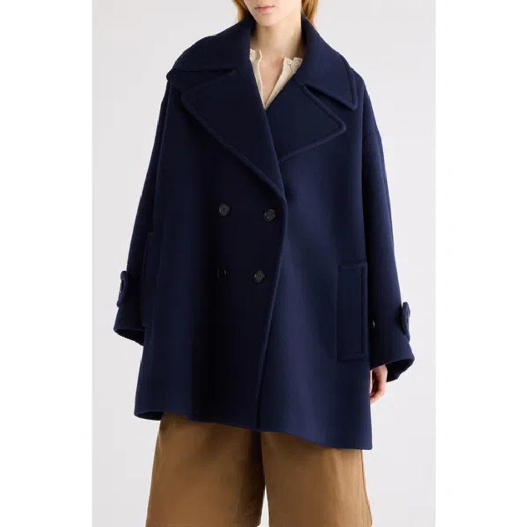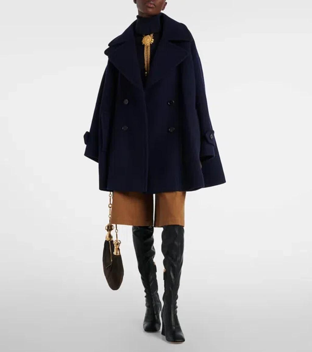 Shop Chloé Chloe Double-breasted Wool-blend Jacket In Black from 800+ stores, starting at $2299. Material: 80% wool, 20% polyamide. Care instructions: dry clean. Made in Slovakia. Designer color name: Evening Blue. Item color: blue. Lining: 62% viscose, 38% cotton. Details: 100% water-buffalo horn. Notched lapel. Closure: double-breasted (four buttons). Pockets: side slit pockets. Cuff: buttoned. Wool.