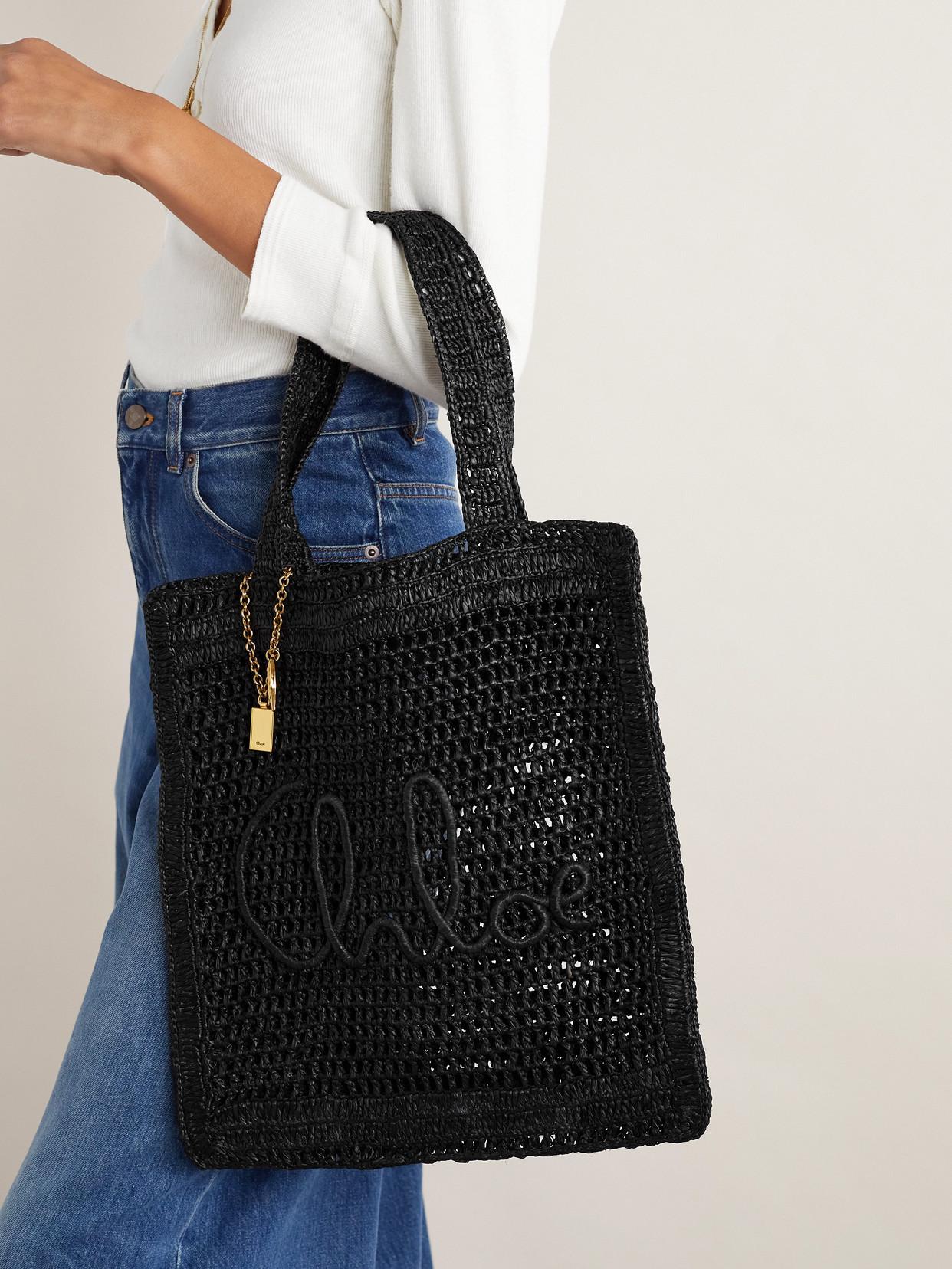 Shop Chloé Summer Banana Embellished Crocheted Embroidered Faux Raffia Tote In Black from 800+ stores, starting at $630. Summer Banana raffia shopping bag with water repellent treatment, front logo, double fixed handle, removable metal pendant. In collaboration with Made For A Woman.