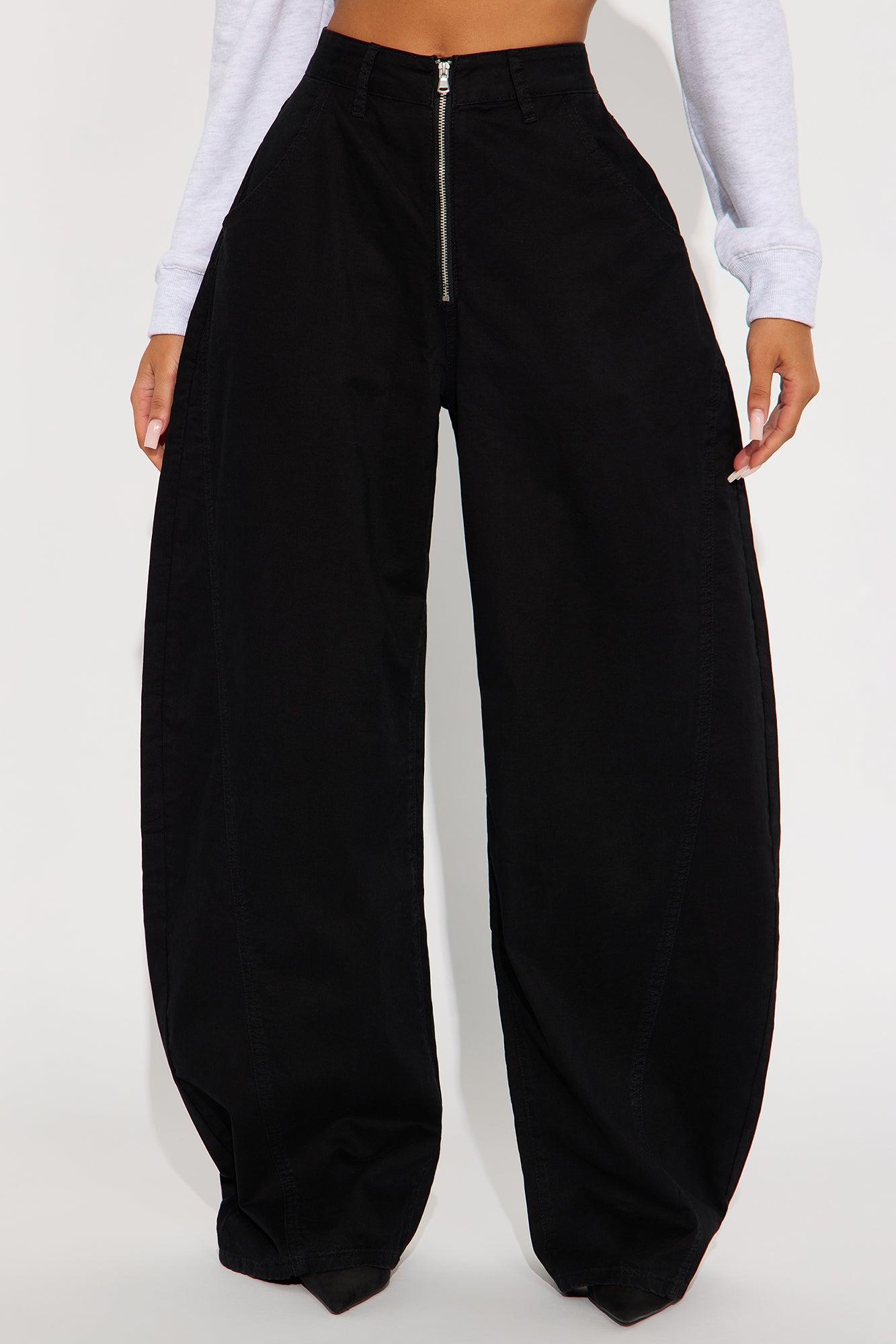 WOMEN'S BARREL LEG PANTS (BLACK)