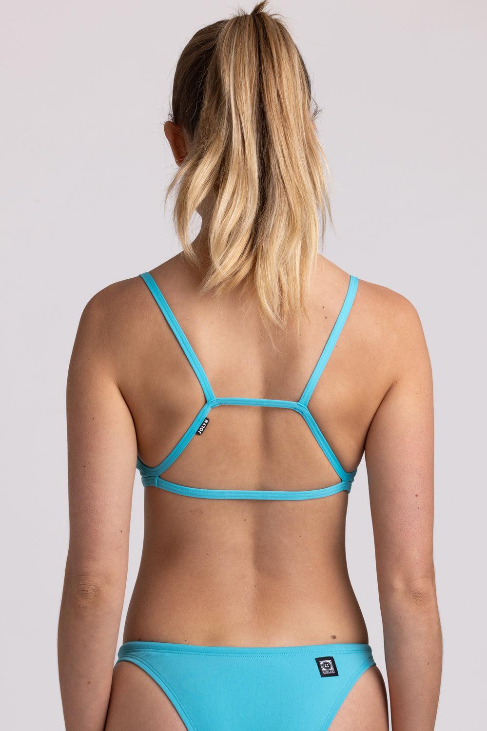 The Chloe swim top - its innovative keyhole front design allows water to flow through effortlessly, ensuring optimal comfort and performance during your pool sessions. Engineered for maximum support and stability, the Chloe features a fixed back for a perfect fit that stays in place no matter how active you get, with the tension distributed evenly. Say goodbye to constant adjustments and hello to uninterrupted focus on your fitness goals. Features: Good for: Swim, Water Polo, Surfing, paddling, lifeguarding, ocean activities, pool activities, lifestyle Fixed-Back Lined for maximum privacy Medium coverage High impact Tagless for maximum comfort Chlorine proof Pill-resistant 2-way stretch Reinforced stitching Fabric Composition: Foreverever Fabric 100% Polyester Elastic contains trace amounts of Latex Care Instructions: Hand wash cold Hang dry Do not iron, dry clean or bleach