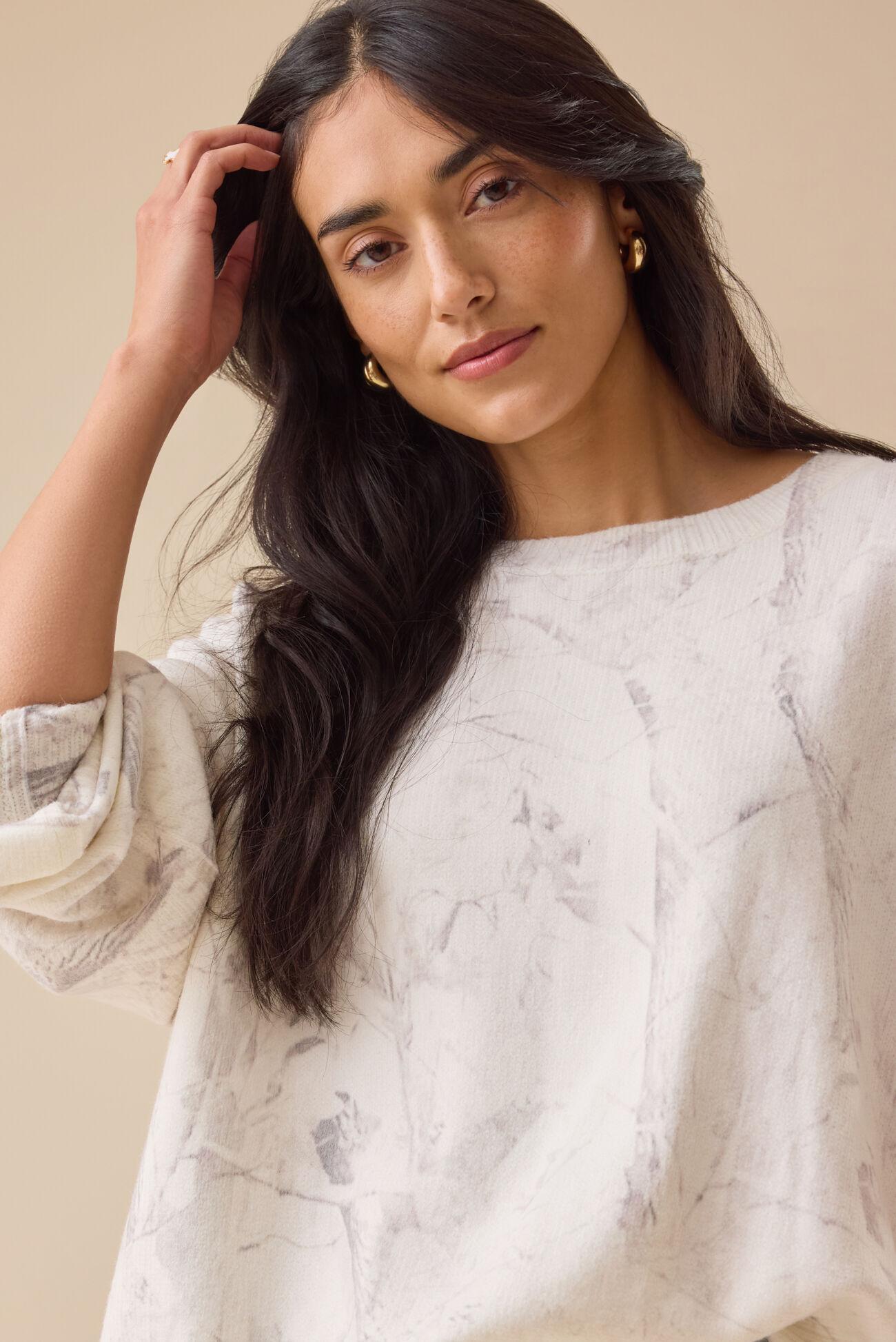 Make a statement without saying a word in our effortlessly cool camo sweater. Built for comfort and ready for anything, this top is your new go-to for chillier days.
