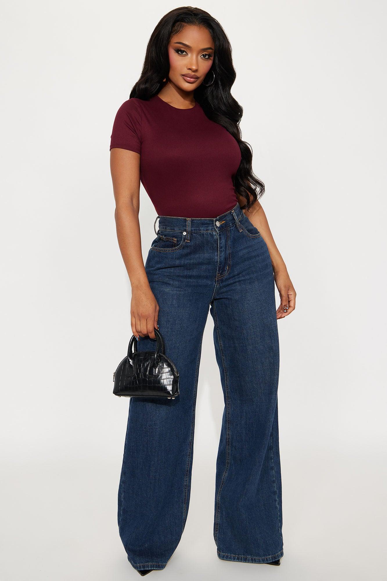 Chloe Crew Neck Short Sleeve Tee - Burgundy Female