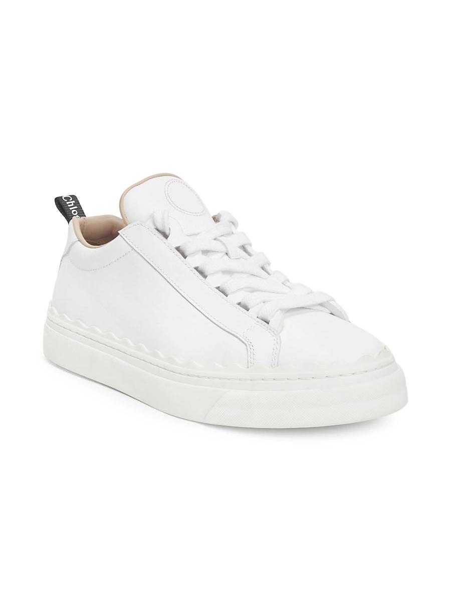 Chlos Lauren sneakers are crafted of smooth leather in a low-top silhouette with a scalloped rubber platform sole. A branded heel loop finishes this style. Leather upper Lace-up style Leather lining Rubber sole Made in Spain ABOUT THE BRAND In 1952, founder Gaby Aghion established Chlo as an alternative to couture, and to appeal to the aspirations and empowerment of women. The label is now led by Creative Director Gabriela Hearst, who furthers its signature cool, French-girl style aesthetic. Womens Shoes - Chloe Womens Shoes > Chlo > Saks Fifth Avenue > Barneys. Chlo. Color: White. Size: 7.