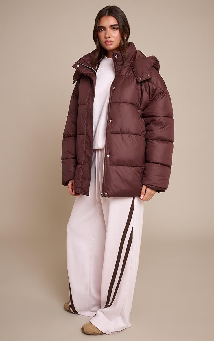 Master the art of cold-weather dressing with a confidence that speaks volumes. The chocolate brown oversized hooded puffer jacket brings an immediate style upgrade to your everyday wardrobe, featuring a high stand-up collar and practical hood for ultimate coverage against the elements. Its generous, oversized silhouette offers a relaxed yet refined look, while the hidden zip fastening and subtle snap button placket maintain a clean, elevated finish. Layer this essential piece over a sleek knit sweater and tailored pants for a day look that’s both cosy and chic. Complete the ensemble with sturdy Combat boots and minimalist accessories to navigate your day with an undeniable fashion edge.Length approx 68.5cm/27inch (Based on sample size S)Model wears size SModel Height - 5ft 7inchp]:!mb-4inch>Category: OuterwearProduct type: PufferColor: ChocolateMaterial: ShellOccasion: Day