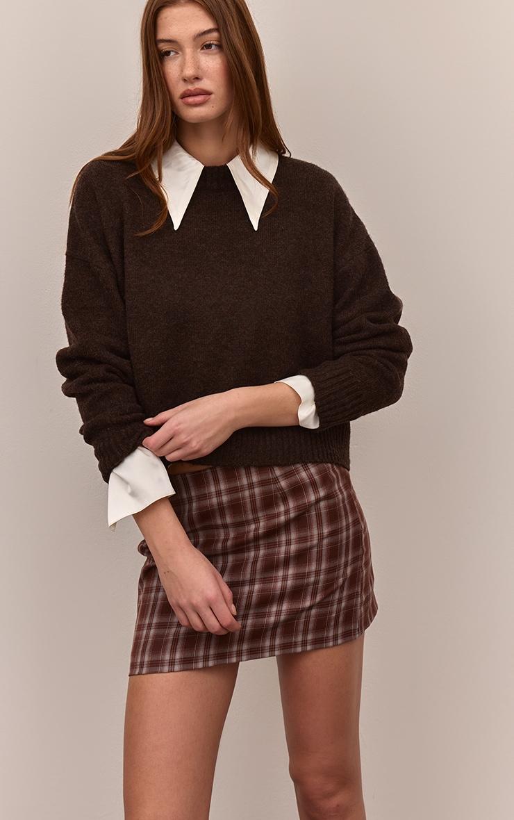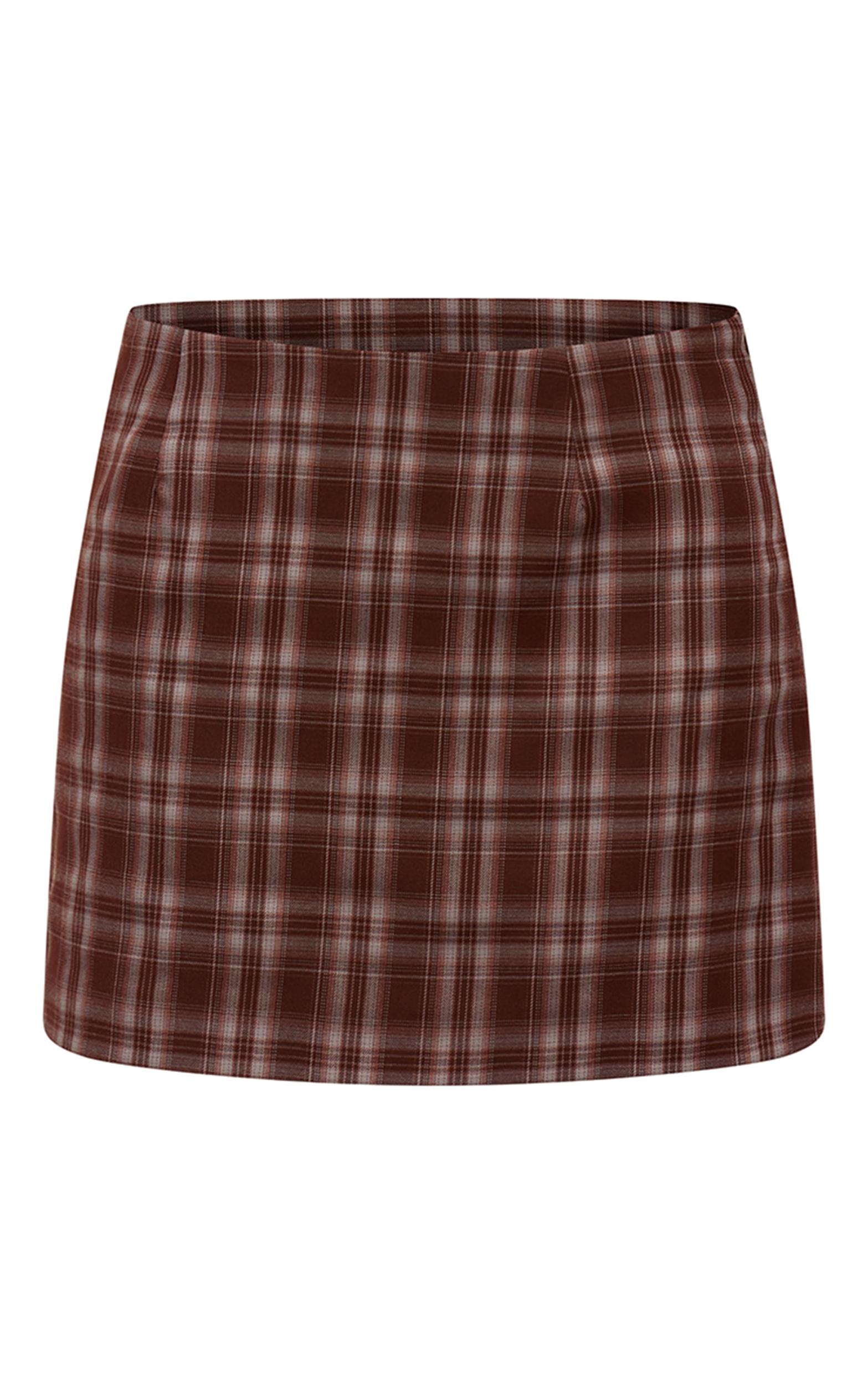 Make a statement with the chocolate check woven A-line mini skirt. Designed in woven fabric with a chocolate check print, this skirt features an A-line silhouette that flatters every figure. Pair with a knit sweater and a pair of knee high boots for a chic autumnal look.Length approx 33cm/13inch (Based on sample size US 4)Model wears size UK 8/ EU 36/ AUS 8/ US 4Model Height - 5ft 9inchp]:!mb-4inch>Brand: PrettyLittleThingCategory: BottomsProduct type: Mini SkirtColor: ChocolateMaterial: Woven CrepeOccasion: Day