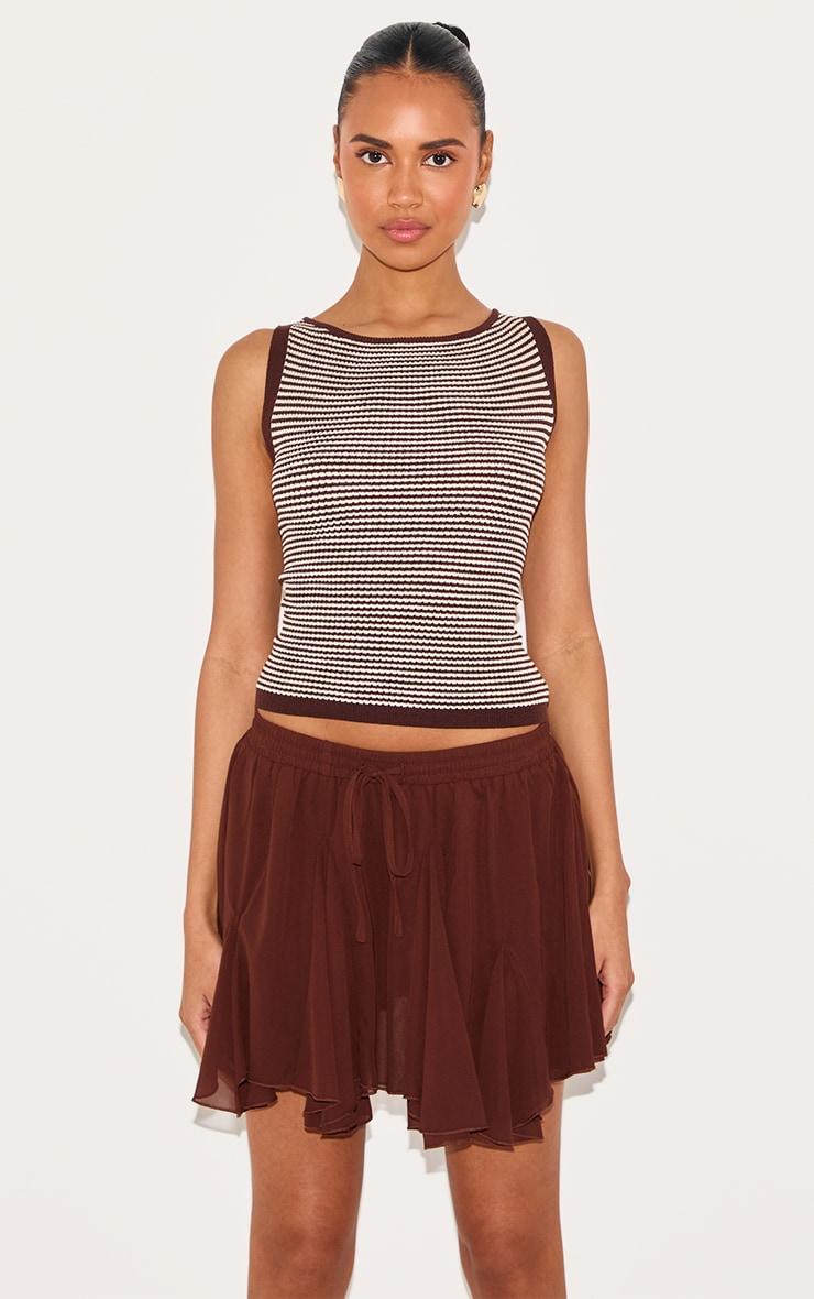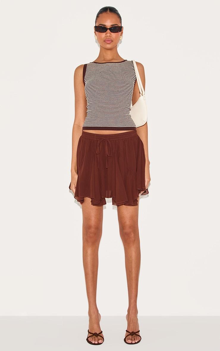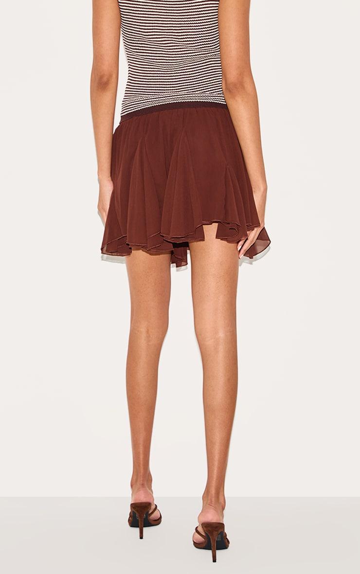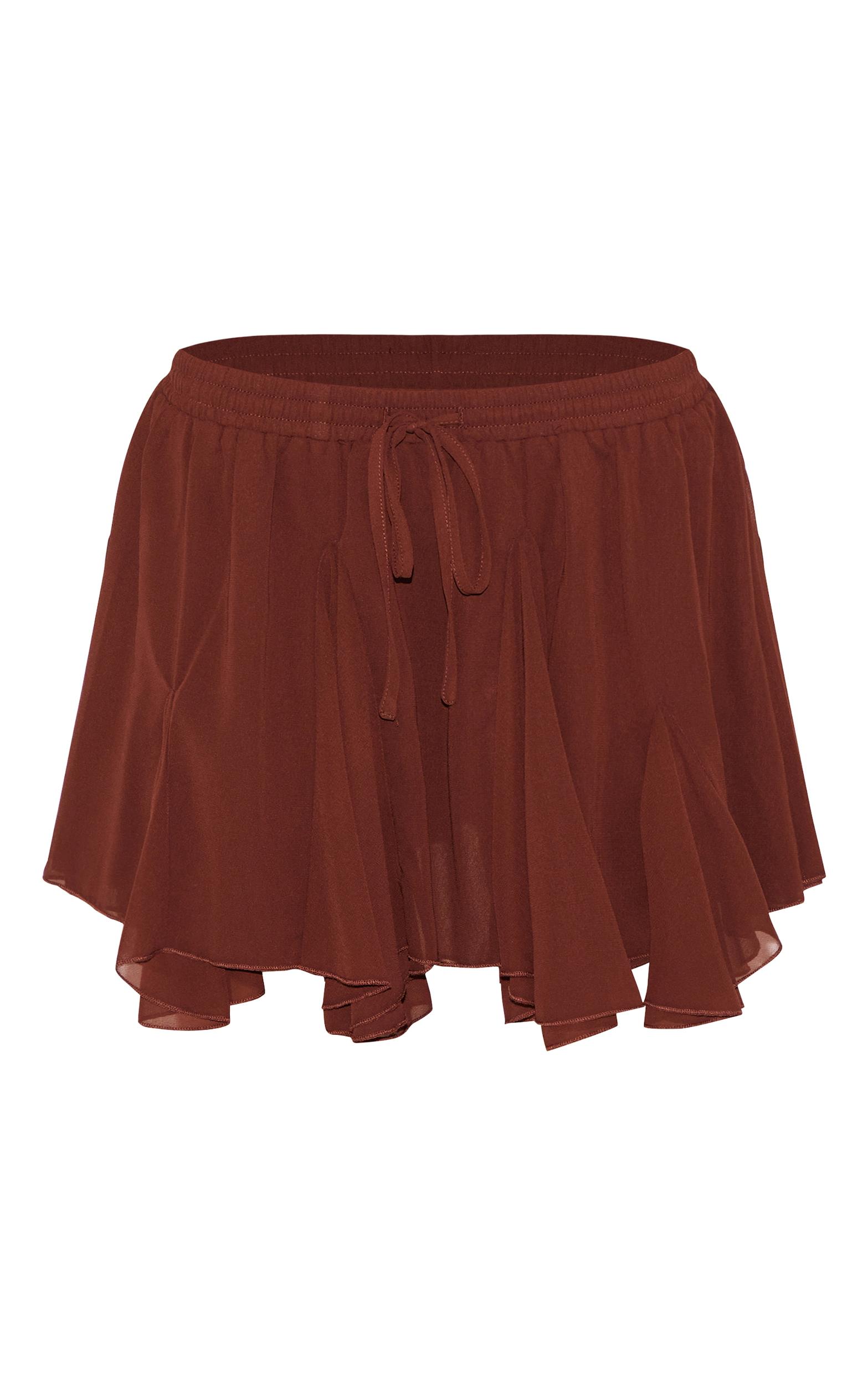 Crafted from a chocolate chiffon material with a godet floaty design and a mini length. Finish off the outfit by styling this chocolate chiffon godet floaty mini skirt with a pair of classic slip on heels, a tank top, your go-to sunglasses and a shoulder bag to complete the look.Length approx 33cm/13inch (Based on sample size US 4)Model wears size UK 8/ EU 36/ AUS 8/ US 4Model Height - 5ft 9inchp]:!mb-4inch>Brand: PrettyLittleThingCategory: BottomsProduct type: Mini SkirtColor: ChocolateMaterial: ChiffonDesign: PlainOccasion: Evening