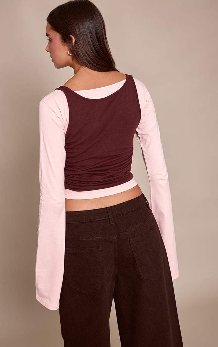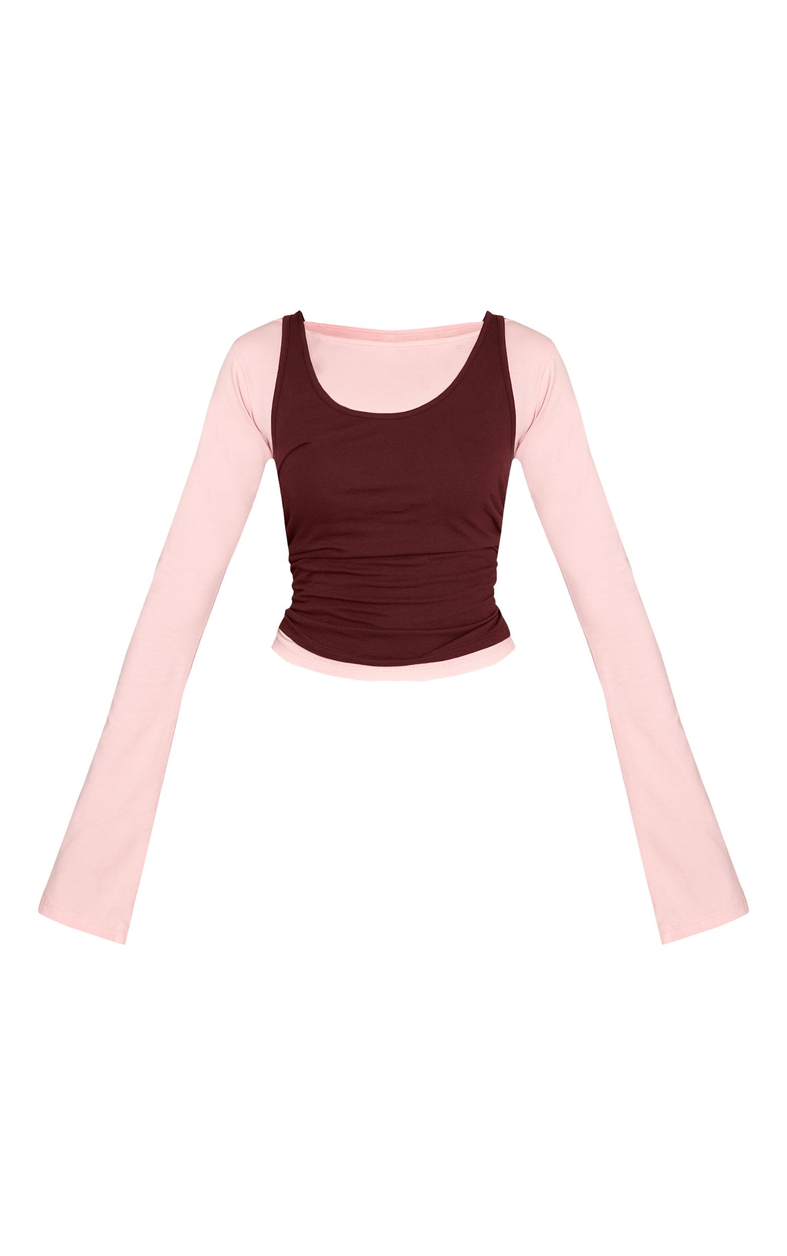 Curate a modern aesthetic with the chocolate cotton overlay detail long sleeve top. This innovative piece presents a cropped chocolate scoop neck cami positioned over a pale long sleeve, boat neck design. It's essential for commanding attention during elevated daily outings or spontaneous city explorations. Ground this look with wide-leg denim, chic flats, and a sleek black bag for an effortlessly composed ensemble.Length approx 48.5cm/19inch (Based on sample size US 4)Model wears size UK 8/ EU 36/ AUS 8/ US 4Model Height - 5ft 7inchp]:!mb-4inch>Brand: PrettyLittleThingCategory: TopsProduct type: Fitted T-ShirtColor: ChocolateMaterial: Cotton JerseyDesign: PlainNeckline: Straight NeckSleeves: LongOccasion: Day