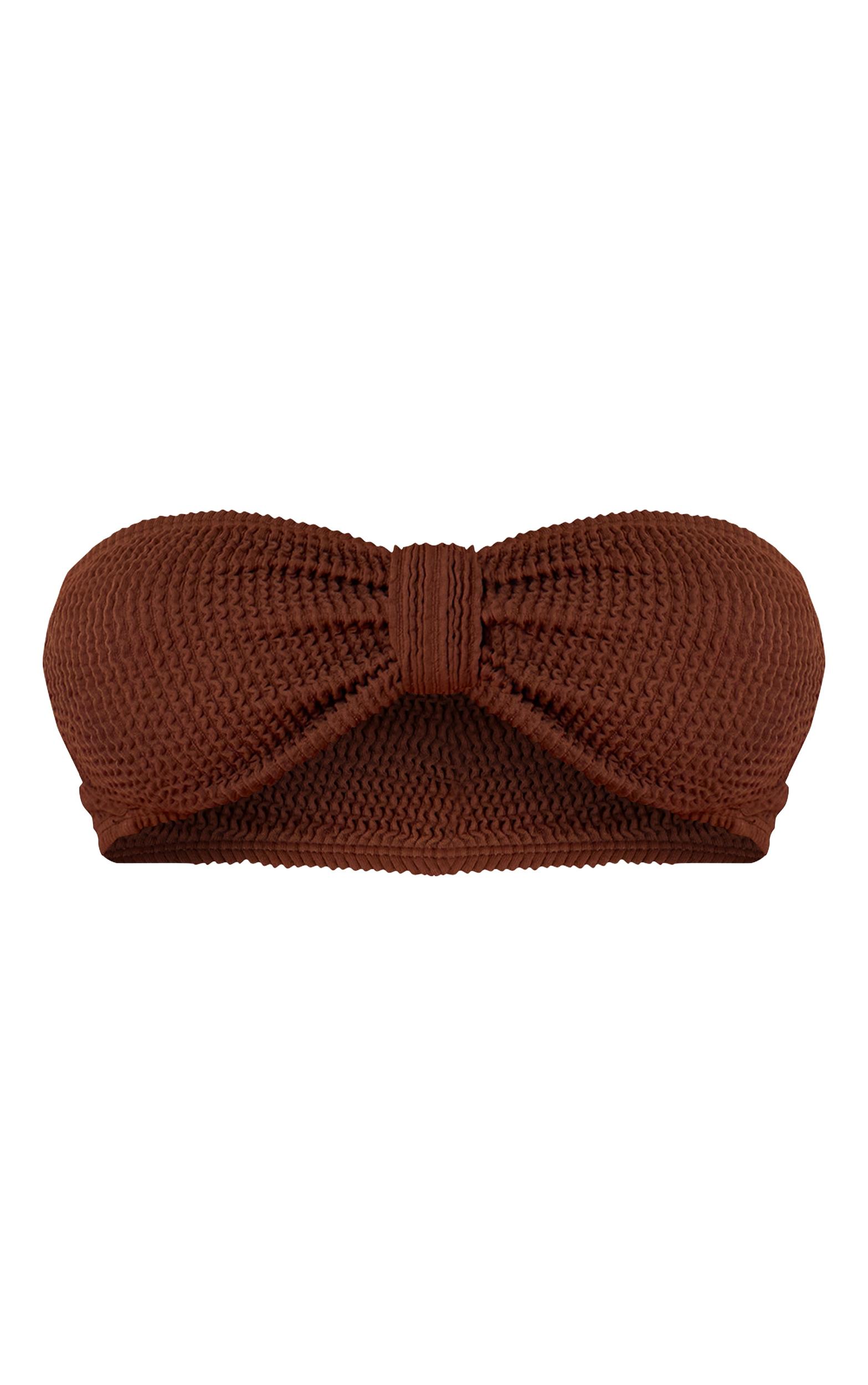 Define your sun-drenched style with a piece that understands understated impact. The chocolate crinkle bandeau knot front bikini top offers a sleek, strapless silhouette, perfected by a distinctive knotted detail at the bust that adds an artful touch to its rich chocolate hue and textured finish. Pair this essential piece with the coordinating crinkle bikini bottoms for a cohesive poolside presence, then complete the look with an oversized linen shirt and statement sunglasses for an undeniable resort aesthetic. It’s the definitive choice for those who command their day with effortless poise.Length approx 16.5cm/6.5inch (Based on sample size S)Model wears size SModel Height - 5ft 6inchp]:!mb-4inch>Brand: PrettyLittleThingCategory: SwimwearProduct type: Bandeau Bikini TopColor: ChocolateMaterial: Crinkle SwimOccasion: Day