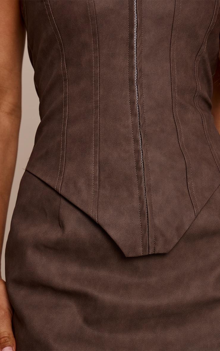 Embrace a confident evening aesthetic with the alluring chocolate faux leather corset detail mini dress. Presented in a rich chocolate faux leather, this mini dress features a structured corset detail, a daring halterneck, and a full-length front zip fastening. This piece is perfect for an artful evening statement or those spontaneous night-out plans. Complete your impactful look with sleek white heels and a stack of delicate gold bracelets.Length approx 81.5cm/32inch (Based on sample size US 4)Model wears size UK 8/ EU 36/ AUS 8/ US 4Model Height - 5ft 8inchp]:!mb-4inch>Brand: PrettyLittleThingCategory: DressesProduct type: Corset DressColor: ChocolateMaterial: Faux LeatherOccasion: Evening