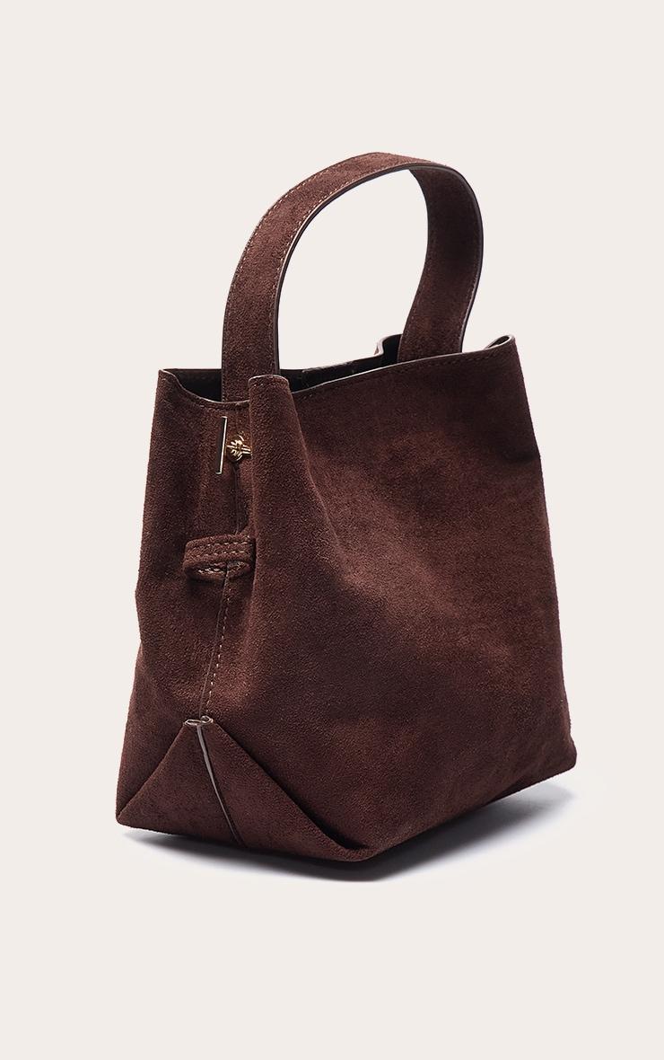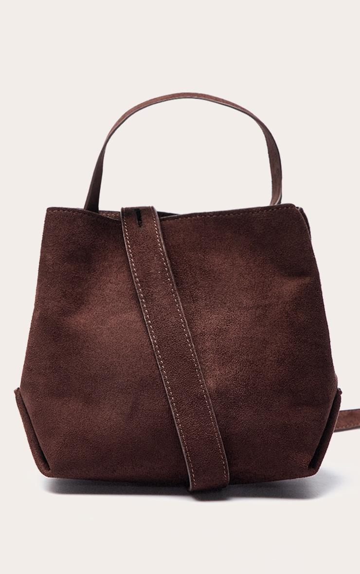 Complete your refined daywear edit with a piece designed for effortless appeal. The chocolate faux suede mini bucket crossbody bag offers a compact silhouette, featuring a drawstring closure and dual strap options – a short top handle and a longer, adjustable strap for versatile styling. This essential accessory grounds any ensemble with its deep chocolate hue, pairing perfectly with wide-leg tailored pants and a relaxed knit sweater, especially when styled with chic flats and subtle gold bracelets for a cohesive and assured aesthetic that transitions through your day with ease. Approx Height: 33cm/13inch Approx Width: 30cm/12inch Approx Depth: 2.5cm/1inchp]:!mb-4inch>Brand: PrettyLittleThingCategory: AccessoriesProduct type: Cross Body BagColor: ChocolateMaterial: Faux SuedeOccasion: Day