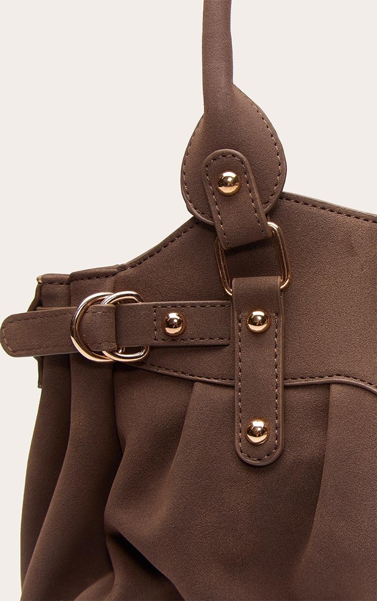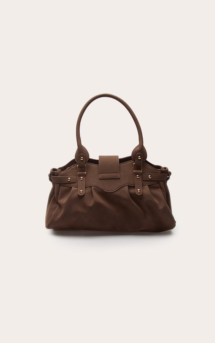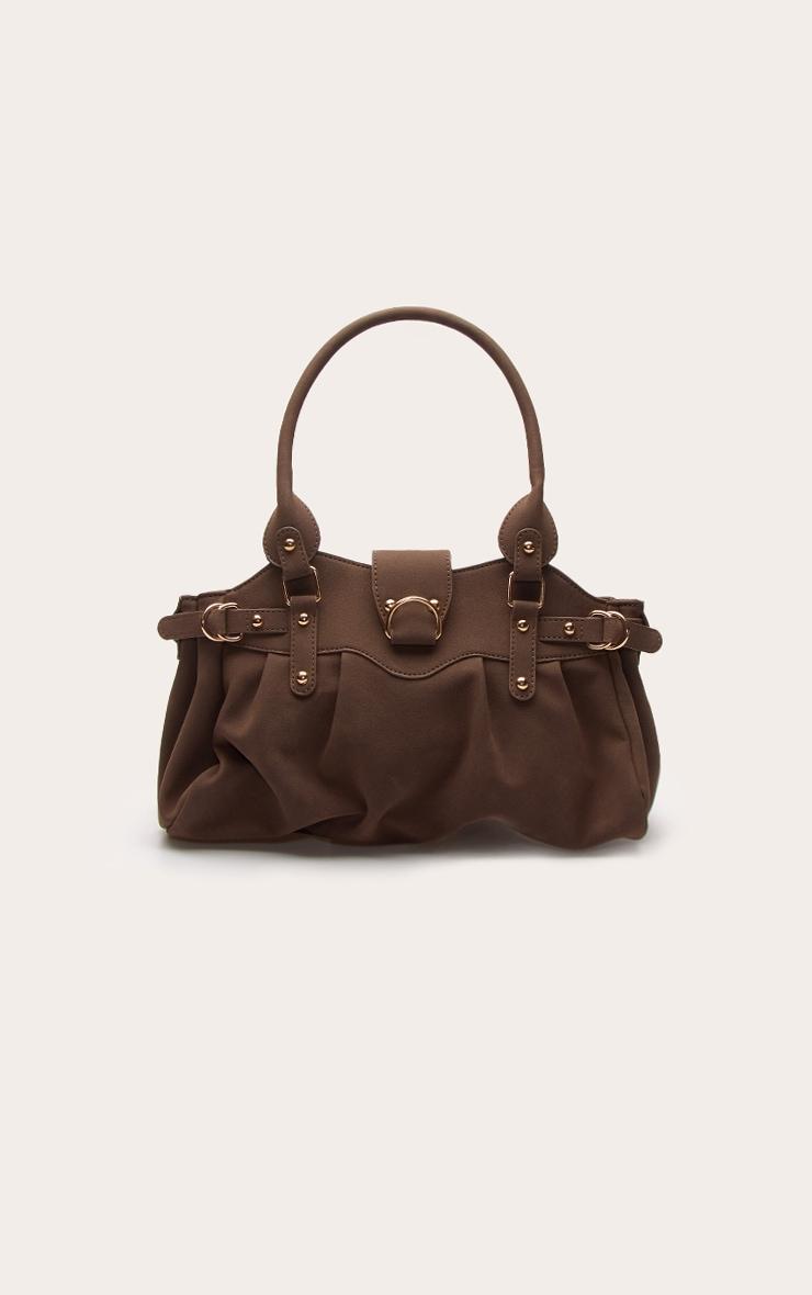 Add texture to your accessories with this chocolate faux suede ruched handbag. Featuring soft faux suede fabric with ruched detailing for a luxe feel. Ideal for elevating your everyday outfits. Approx Height: 34cm/13.5inch Approx Width: 39.5cm/15.5inch Approx Depth: 5cm/2inchp]:!mb-4inch>Brand: PrettyLittleThingCategory: AccessoriesProduct type: HandbagColor: ChocolateMaterial: Faux SuedeOccasion: Day