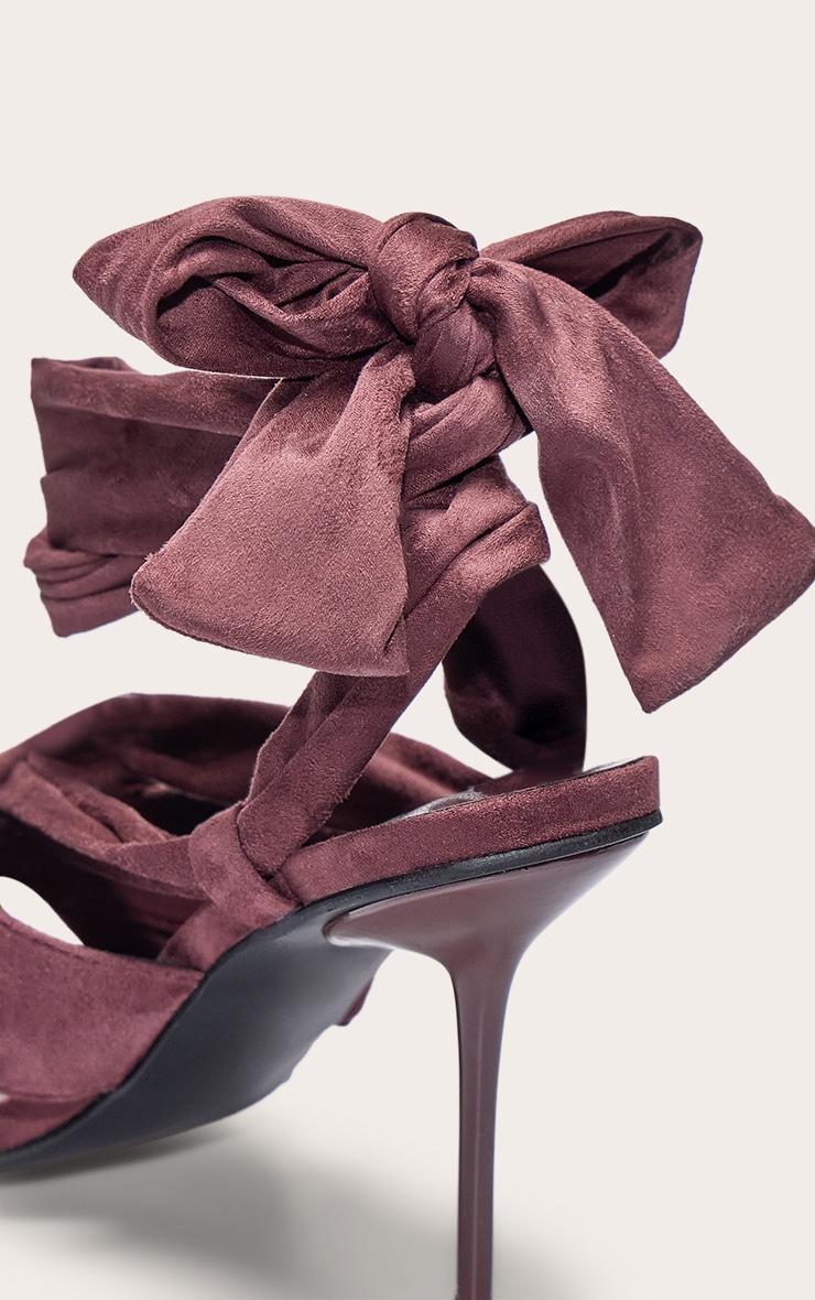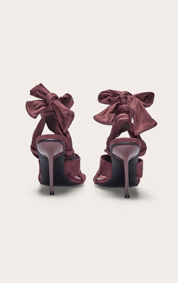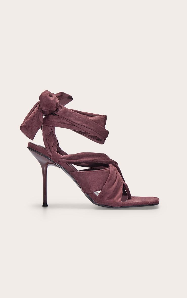 Brought to you in a chocolate faux suede material with a square toe, a thong design, a lace up fastening and a 4.5 inch high stiletto heel detail. Team these chocolate faux suede square toe thong lace up high stiletto heeled sandals with your go-to weekend outfit to turn heads this season.p]:!mb-4inch>Brand: PrettyLittleThingCategory: FootwearProduct type: Heeled SandalsColor: ChocolateOccasion: Day