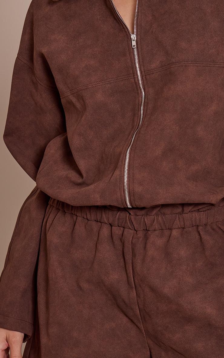 Curate a knowing daytime look with a single, impactful piece that marries comfort with directional style. The chocolate faux suede zip up romper champions an effortless, relaxed silhouette, featuring a sleek collared neckline and a polished full-length zip fastening that offers versatile styling. Its long, dropped-shoulder sleeves and an elasticated waist create a subtly blouson upper, flowing into relaxed shorts for an easy, confident profile. Style this essential with a pair of contemporary block heels and delicate stud earrings for an elevated day ensemble, ensuring you command every room with an artful, self-aware presence.Length approx 81.5cm/32inch (Based on sample size US 4)Model wears size UK 8/ EU 36/ AUS 8/ US 4Model Height - 5ft 9inchp]:!mb-4inch>Brand: PrettyLittleThingCategory: DressesProduct type: Tailored PlaysuitColor: ChocolateMaterial: Faux SuedeOccasion: Day
