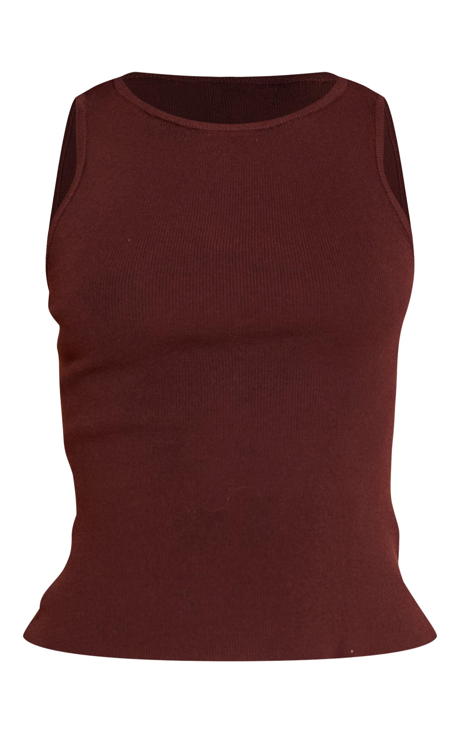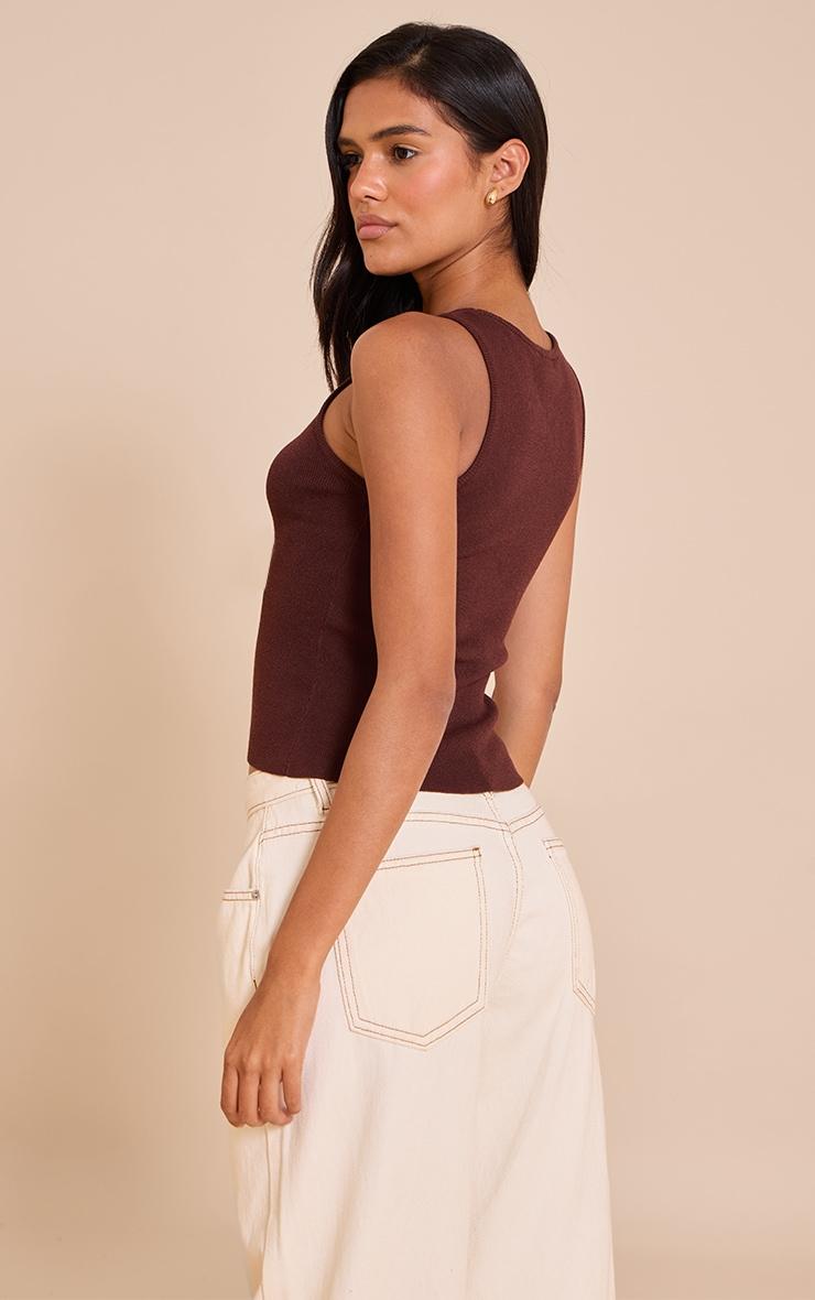 This season’s essential layering piece arrives in a considered chocolate hue. Crafted from a fine knit, this racer neck top offers a streamlined silhouette and tactile appeal. The high neckline lends a modern edge, making it ideal for elevated everyday styling. For a seamless pairing, consider wide-leg pants from our bottoms collection and sculptural gold hoops.Length approx 48.5cm/19inch (Based on sample size S)Model wears size SModel Height - 5ft 6inchp]:!mb-4inch>Brand: PrettyLittleThingCategory: KnitwearProduct type: Vest TopColor: ChocolateMaterial: KnitNeckline: RacerSleeves: ShortOccasion: Day