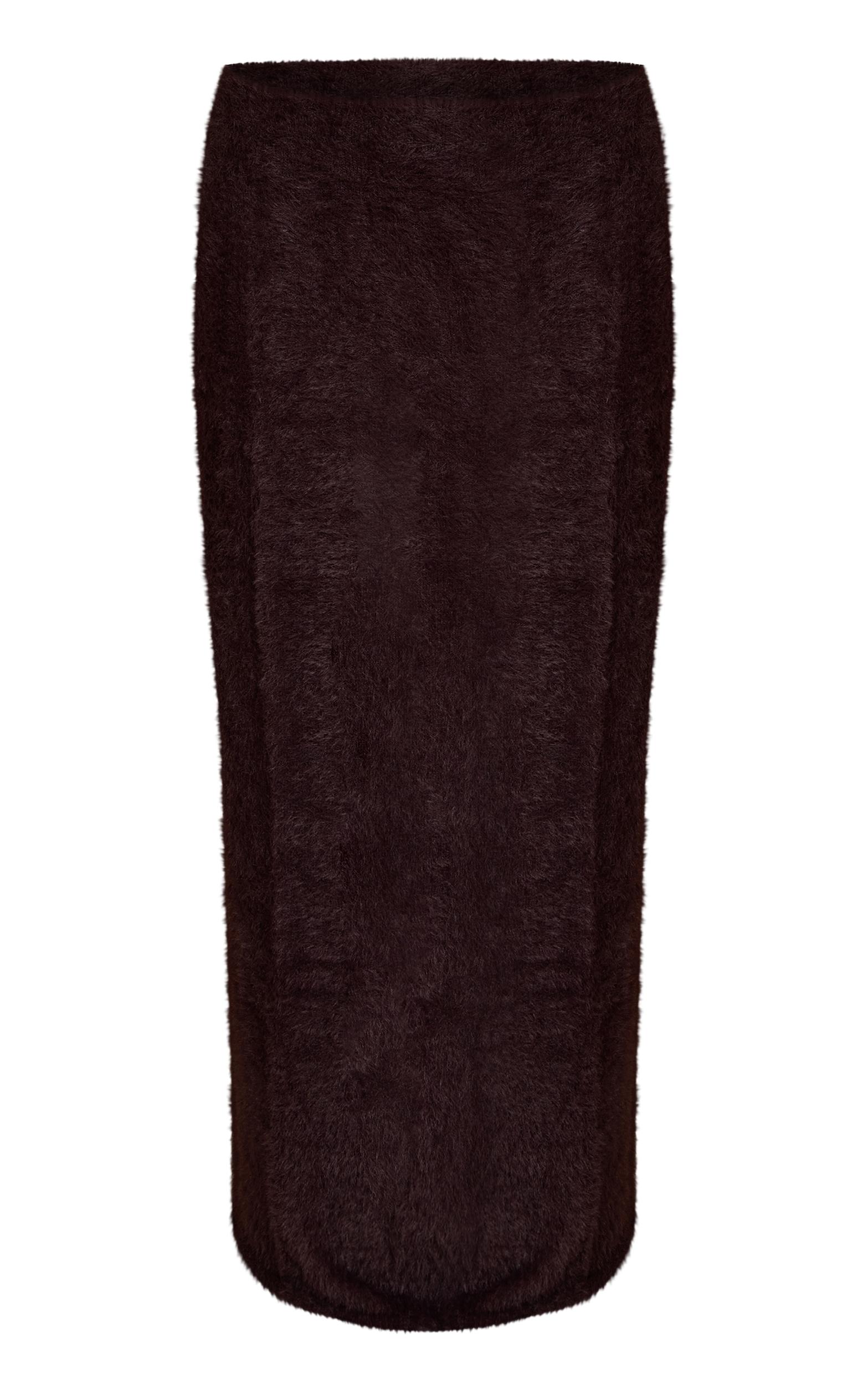 Command attention with ease. The chocolate fluffy knitted maxi skirt defines daywear with its sleek, floor-skimming silhouette, an essential piece for any discerning wardrobe. This maxi length two piece set skirt ensures an effortlessly chic statement, perfect for transitioning through your agenda. Pair it with a matching knitted sweater for a cohesive aesthetic, or style with a fitted bodysuit for a sharper line. Finish your look with on-trend mid calf boots and subtle gold earrings, proving that considered style is always in.Length approx 108cm/42.5inch (Based on sample size S)Model wears size SModel Height - 5ft 7inchp]:!mb-4inch>Category: KnitwearProduct type: SkirtColor: ChocolateMaterial: KnitOccasion: Day