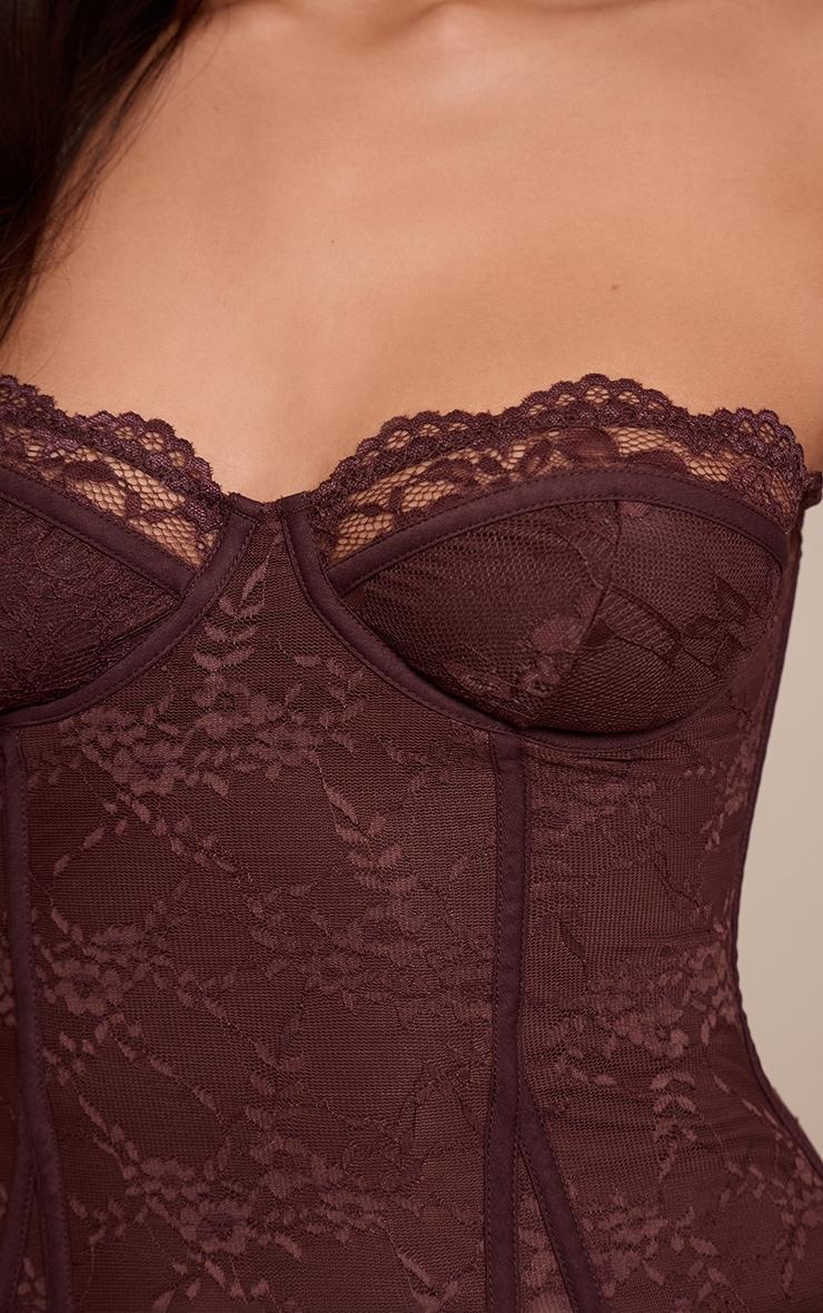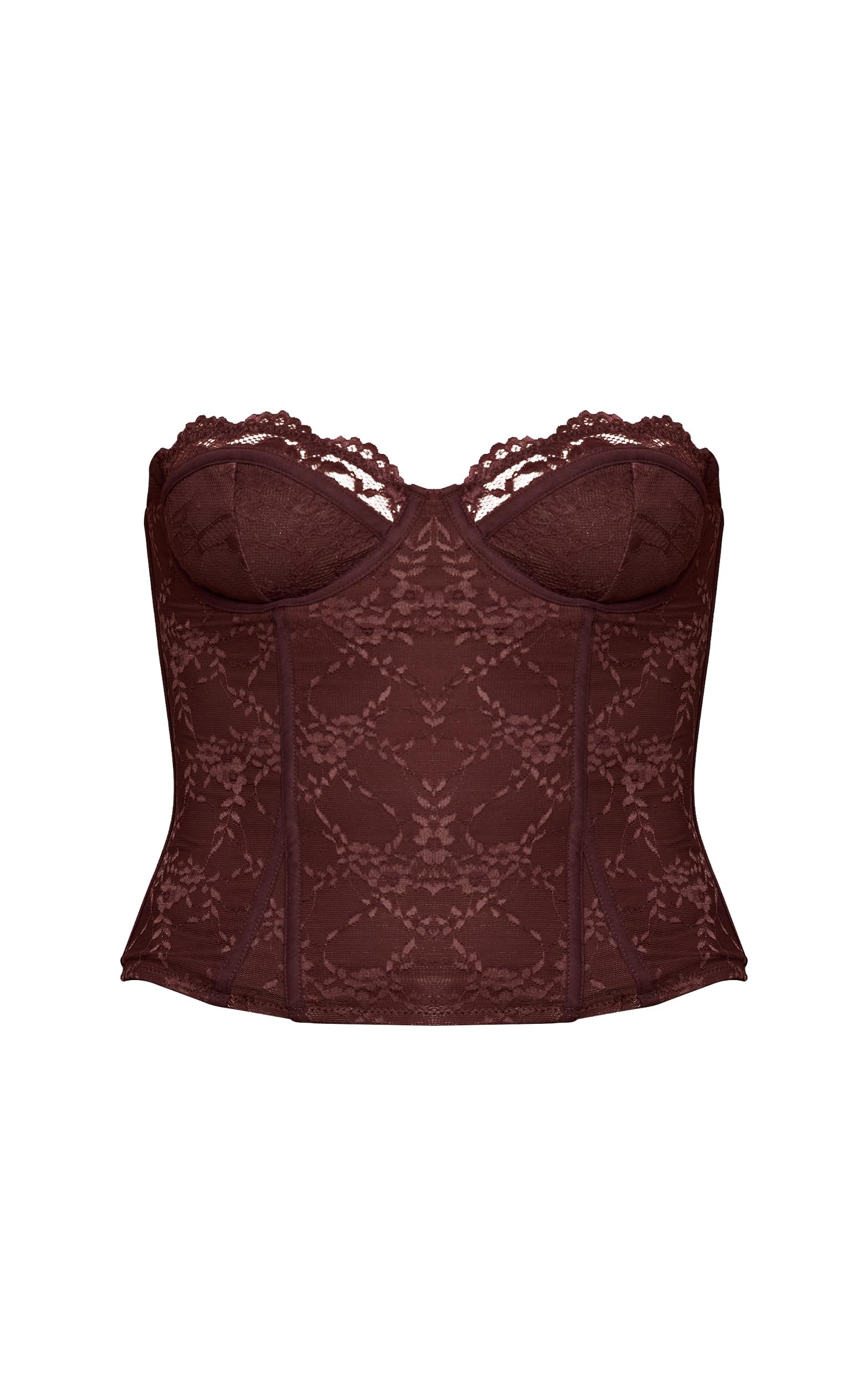 Redefine evening impact with the chocolate lace hook and eye detail bonded bandeau corset. In a striking chocolate hue, it features intricate lace, a flattering bandeau neckline, and a structured bonded design with hook and eye detail. This piece is perfect for chic evening encounters. Style with tailored wide-leg pants, sleek kitten heels, and coordinating gold jewelry for an elevated finish.Length approx 34.5cm/13.5inch (Based on sample size US 4)Model wears size UK 8/ EU 36/ AUS 8/ US 4Model Height - 5ft 8inchp]:!mb-4inch>Brand: PrettyLittleThingCategory: TopsProduct type: CorsetColor: ChocolateMaterial: Woven LaceOccasion: Evening