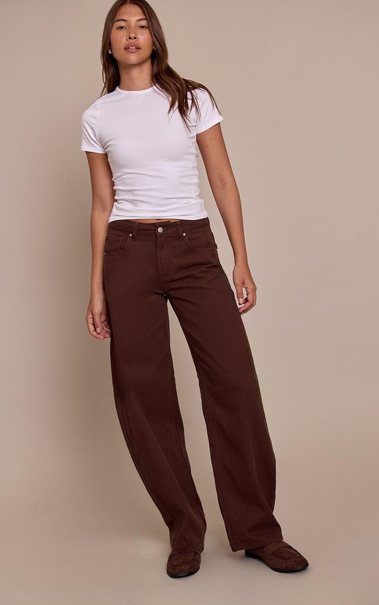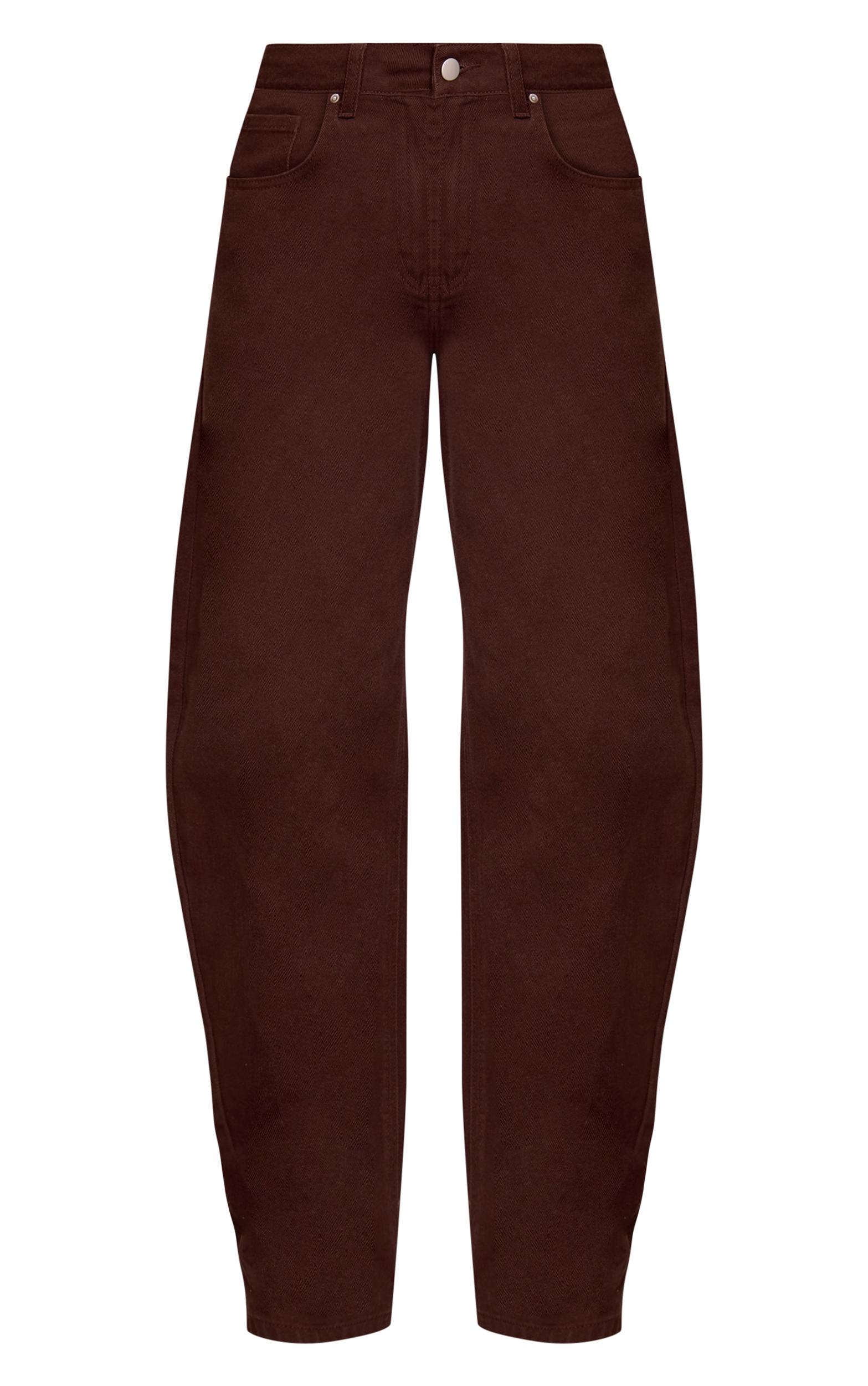 Embrace a confident new denim direction that anchors your aesthetic. The chocolate low rise barrel jeans offer an astute take on everyday style, featuring a relaxed wide-leg cut that sits effortlessly at the hip and extends to a clean, full length. Complete with a classic button and zip fastening and essential five-pocket design, this rich chocolate hue provides a versatile foundation for any daywear look. Pair them with a simple Vest and a chunky knit sweater thrown over your shoulders for a casual yet refined ensemble, or opt for a sharper blouse. Elevate your presence with a statement pair of **cowboy boots** and the understated glimmer of **gold earrings**, making every detail count.Length approx 76cm/30inch (Based on sample size US 4)Model wears size UK 8/ EU 36/ AUS 8/ US 4Model Height - 5ft 9inchp]:!mb-4inch>Category: DenimProduct type: Wide Leg JeansColor: ChocolateMaterial: Rigid DenimOccasion: Day