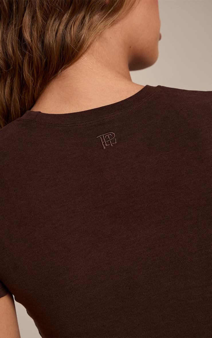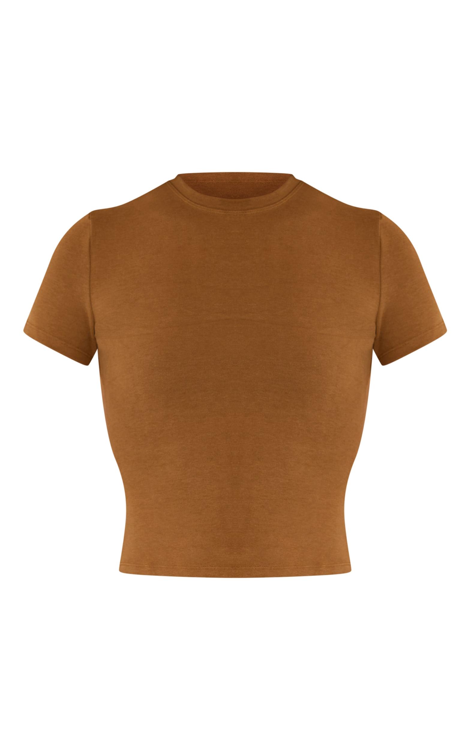 Unlock an effortless aesthetic with a piece that works overtime, the chocolate melange soft cotton short sleeve top. Its classic crew neckline and neatly fitted short sleeves create a sleek, body-skimming profile, offering a rich chocolate foundation for countless ensembles. Dress this versatile active top down with high-waisted sweatpants for a relaxed day look, or elevate it seamlessly with tailored denim. Finish your ensemble with some on-trend ankle boots and understated stud earrings, mastering that confidently cool comfort.Length approx 48.5cm/19inch (Based on sample size S)Model wears size SModel Height - 5ft 10inchp]:!mb-4inch>Brand: PrettyLittleThingCategory: AthleisureProduct type: Long Sleeve TopColor: ChocolateMaterial: Cotton JerseyOccasion: Day