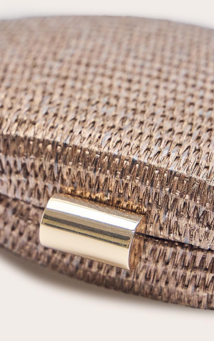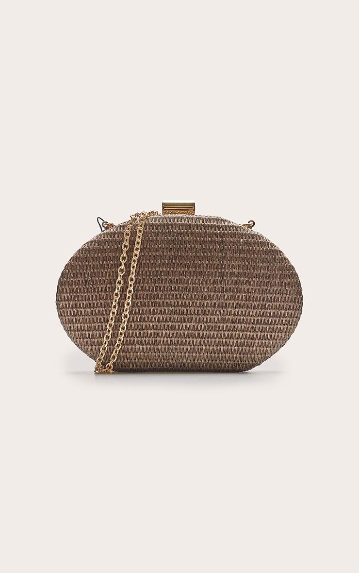 Add texture to your accessories with this chocolate oval raffia structured clutch, a go-to for summer events. Brought to you in a chocolate-toned raffia with a sculpted oval design and compact silhouette, it’s both sleek and versatile. Pair with neutral tones and gold jewelry for a refined warm-weather edit. Approx Height: 10cm/4inch Approx Width: 18cm/7inch Approx Depth: 4cm/1.5inchp]:!mb-4inch>Brand: PrettyLittleThingCategory: AccessoriesProduct type: ClutchColor: ChocolateOccasion: Evening