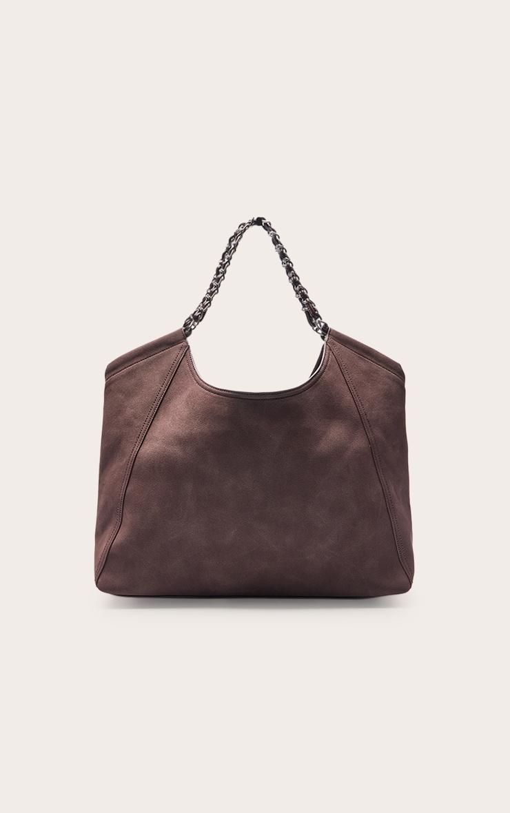 Make a statement with the chocolate plum pu faux suede slouchy tote bag. Crafted from pu faux suede, it features a slouchy silhouette with chain detail. Style with pants, ankle boots, and gold jewelry for day. Approx Height: 34cm/13.5inch Approx Width: 39.5cm/15.5inch Approx Depth: 5cm/2inchp]:!mb-4inch>Brand: PrettyLittleThingCategory: AccessoriesProduct type: ToteColor: Chocolate PlumMaterial: Faux SuedeOccasion: Day