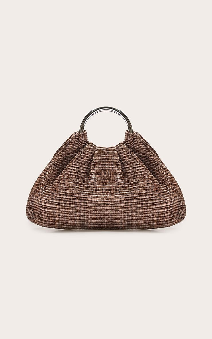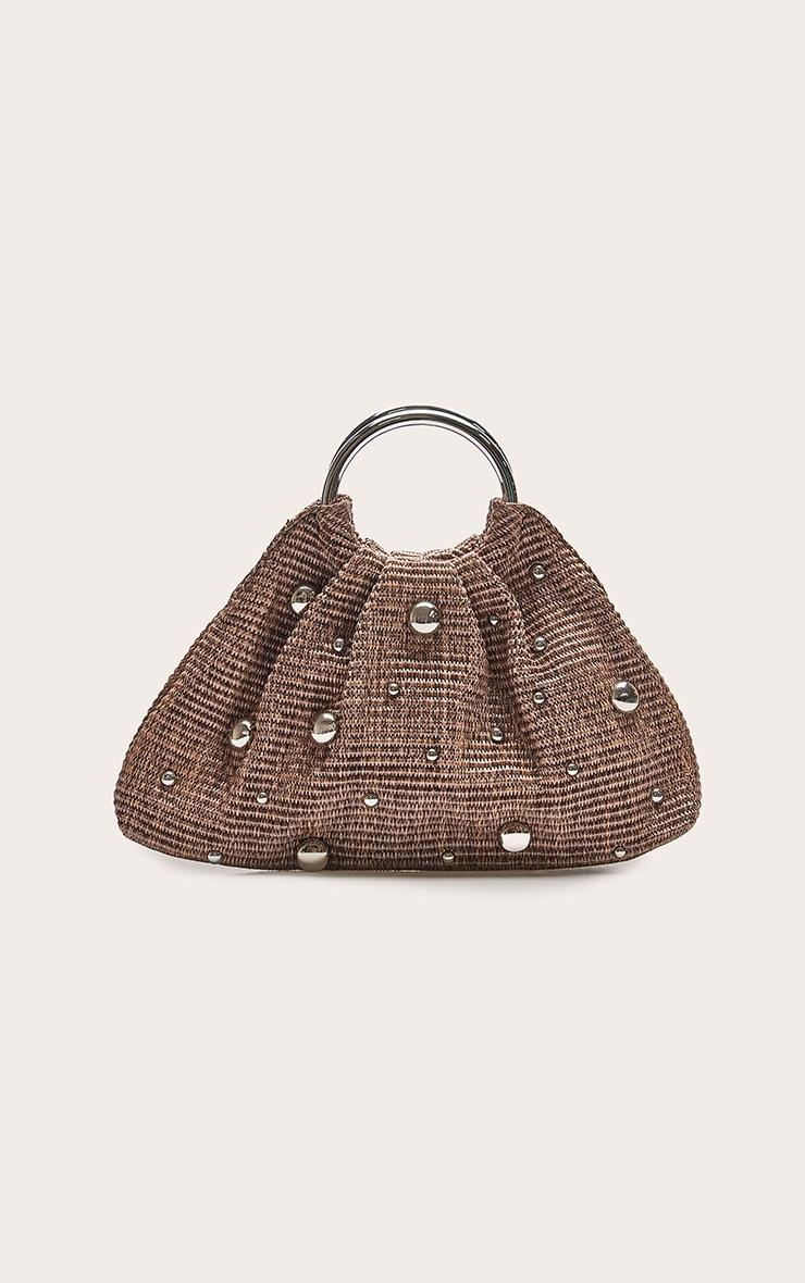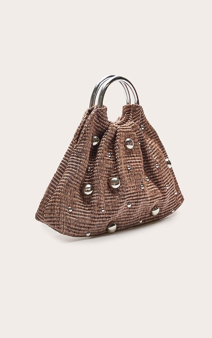 Bring boho-chic glamour to your styling with the chocolate raffia tote, finished with gold stud detailing. Its woven structure and roomy interior make it perfectly practical, while the polished studs add upscale flair. Complement with straw hats, floaty dresses, or beach resort wear for elegant daywear. Approx Height: 36cm/14inch Approx Width: 60cm/23.5inch Approx Depth: 8cm/3inchp]:!mb-4inch>Brand: PrettyLittleThingCategory: AccessoriesProduct type: HandbagColor: ChocolateOccasion: Evening