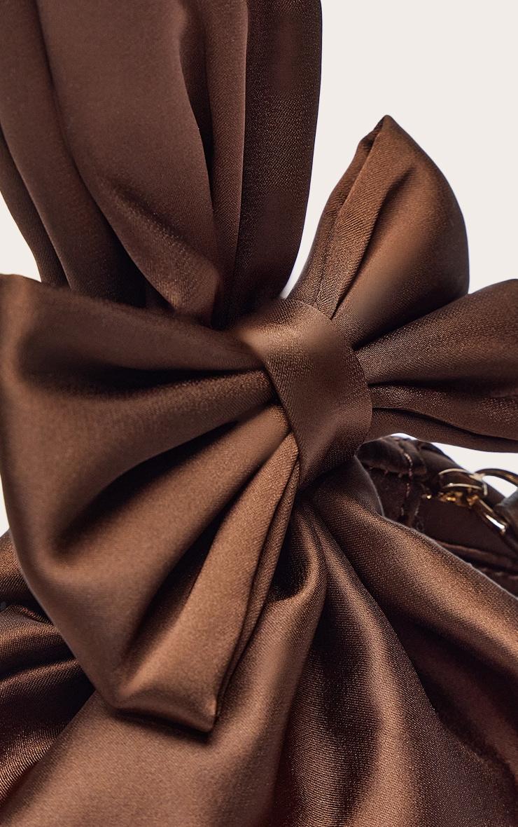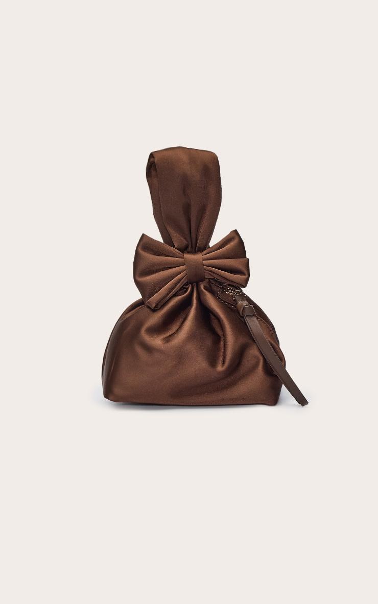 Make a knowing statement with the chocolate satin bow detail clutch bag. Presented in a deep chocolate satin material, it boasts a chic bow detail and neat silhouette. This accessory is a confident essential for exclusive evening plans. Team with a sleek maxi dress, clear heels, and pearl earrings. Approx Height: 15cm/6inch Approx Width: 15cm/6inch Approx Depth: 5cm/2inchp]:!mb-4inch>Brand: PrettyLittleThingCategory: AccessoriesProduct type: ClutchColor: ChocolateMaterial: SatinOccasion: Evening