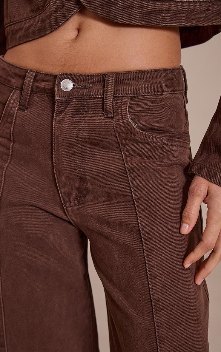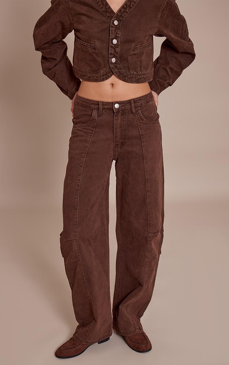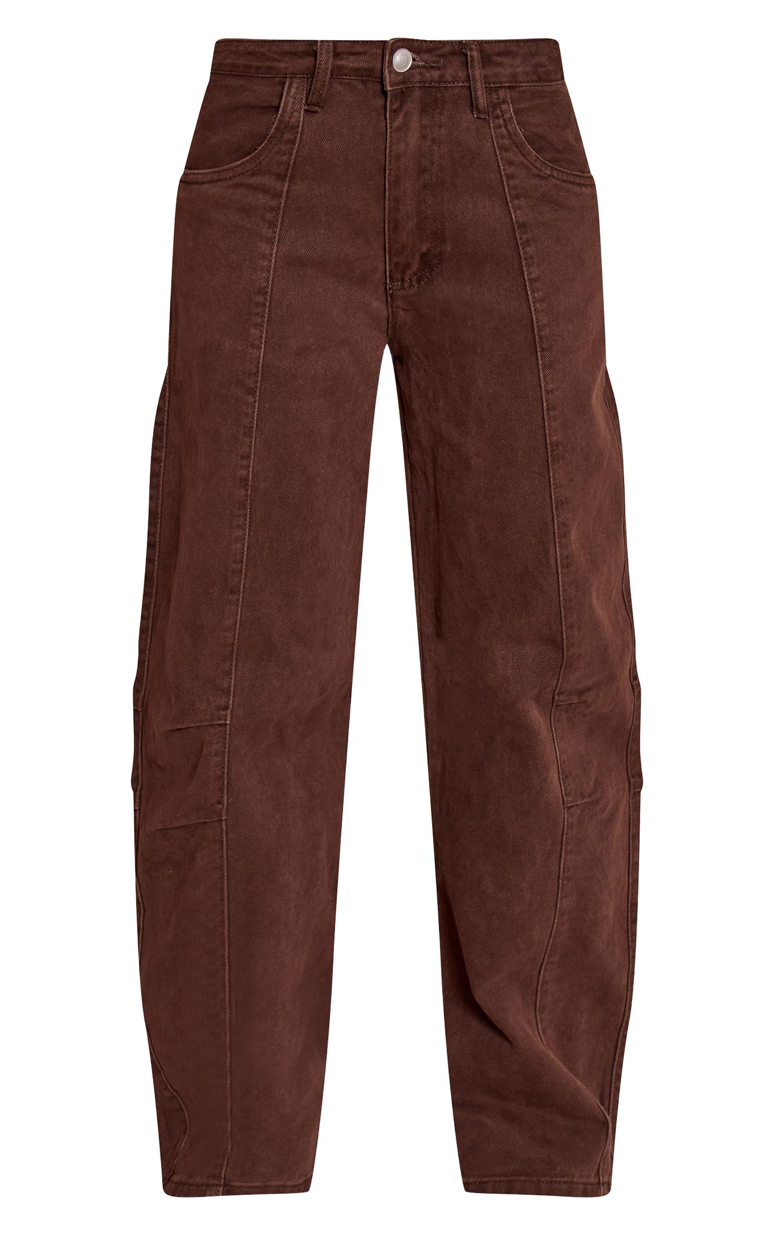 Make a statement without trying too hard in denim that defines contemporary cool. The chocolate seam detail mid rise barrel jean offers an artful take on a classic, with its distinctive barrel leg silhouette and meticulously placed vertical seams that sculpt a confident profile. A classic button and zip fastening secures the flattering mid-rise fit. Team these effortlessly chic jeans with a crisp oversized shirt or the coordinating cropped denim jacket, creating a cohesive and knowing ensemble for day. Ground the look with sophisticated flats for an understated polish, adding minimalist accessories to finish the vibe. This pair ensures your denim edit is anything but ordinary.Length approx 76cm/30inch (Based on sample size US 4)Model wears size UK 8/ EU 36/ AUS 8/ US 4Model Height - 5ft 9inchp]:!mb-4inch>Category: DenimProduct type: Wide Leg JeansColor: ChocolateMaterial: Rigid DenimOccasion: Day