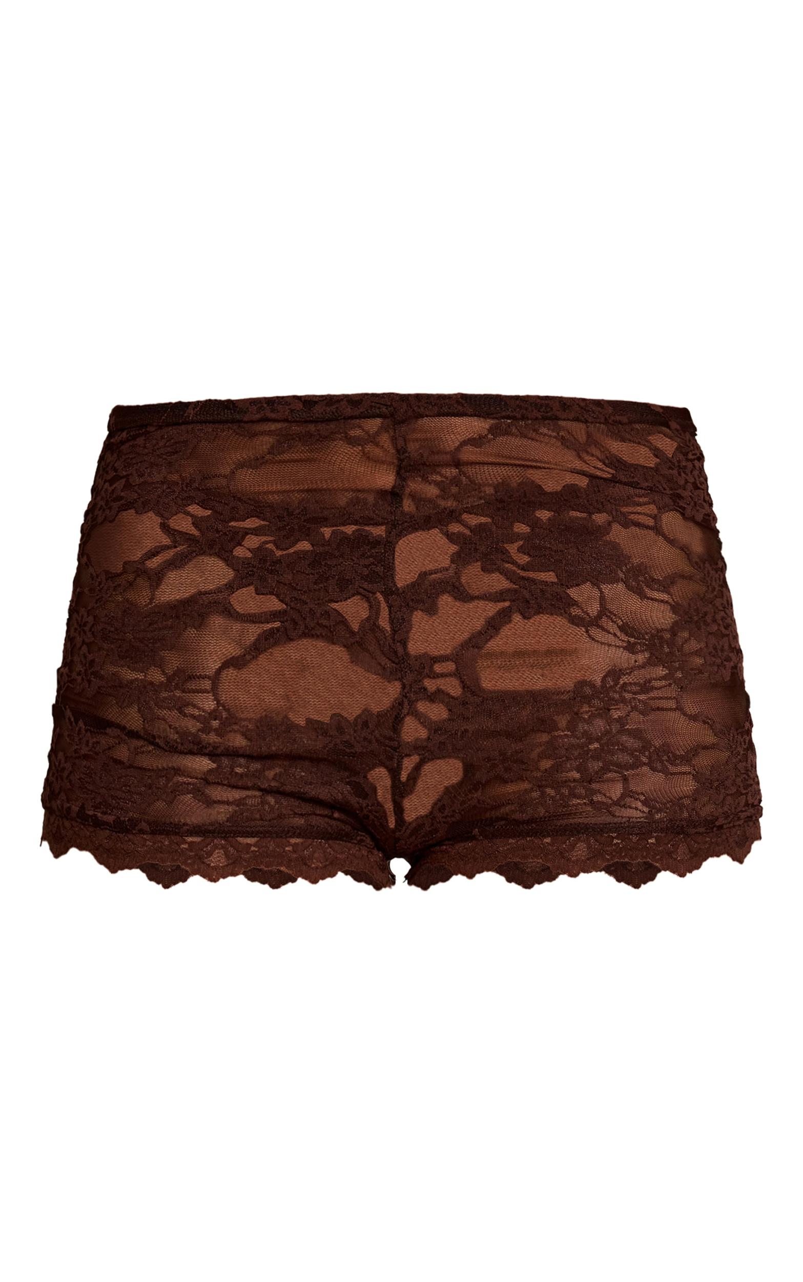 Unveil a distinct edge with the chocolate sheer lace hot pants. Crafted from intricate sheer lace in a rich chocolate shade, they offer an abbreviated cut that sits close to the body. Curated for after-hours occasions, this piece is designed to make an impact. Pair with an oversized blazer, opaque tights, and sleek court heels for a refined, confident statement.Length approx 33cm/13inch (Based on sample size US 4)Model wears size UK 8/ EU 36/ AUS 8/ US 4Model Height - 5ft 8inchp]:!mb-4inch>Brand: PrettyLittleThingCategory: BottomsProduct type: Hot PantColor: ChocolateMaterial: Stretch LaceDesign: PlainOccasion: Evening
