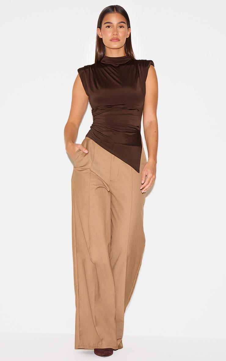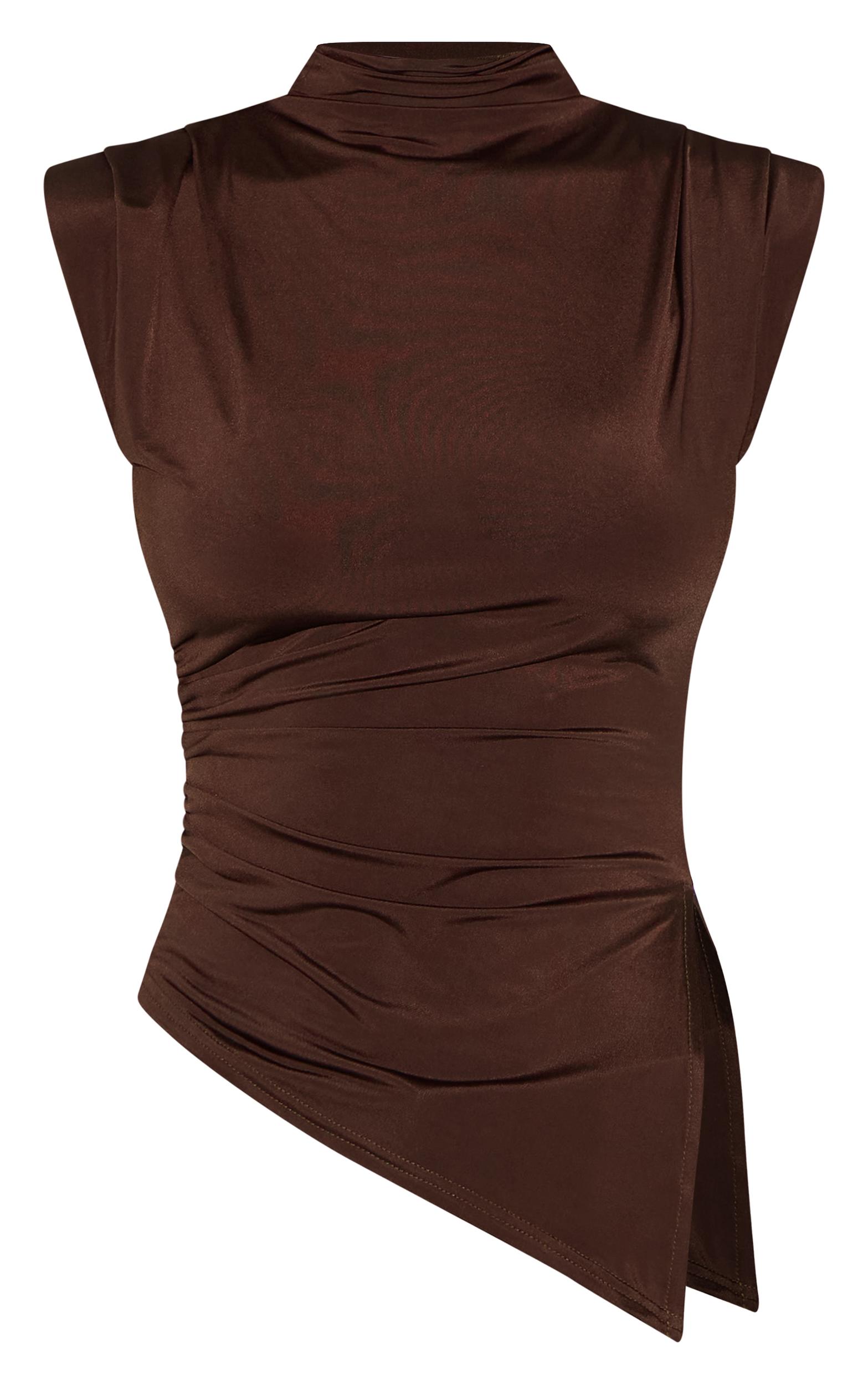 A considered approach to after-dark dressing, this chocolate slinky top offers a masterclass in understated allure. Crafted from a fluid, slinky fabric in a rich chocolate hue, the shoulder detail adds an element of considered design. The longline silhouette lends itself to versatile styling; we suggest pairing it with tailored pants from our bottoms collection for an elevated evening ensemble. Length approx 48cm/19inch (Based on a sample size UK 8) Model wears size UK 8/ EU 36/ AUS 8/ US 4Model Height - 5ft 7inchp]:!mb-4inch>Brand: PrettyLittleThingCategory: TopsProduct type: Vest TopColor: ChocolateMaterial: Slinky JerseyDesign: PlainNeckline: Straight NeckSleeves: SleevelessOccasion: Evening