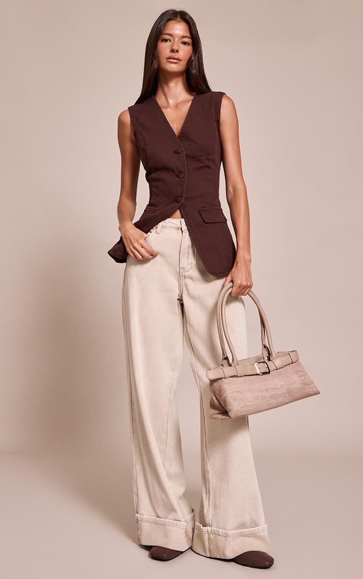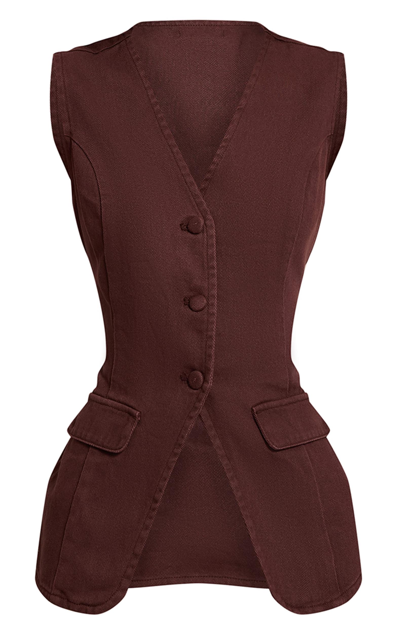 Refine your layers with the chocolate tailored style longline denim vest. Made from a chocolate denim material with a tailored fit and longline cut, it adds structure and edge to any outfit. Style over a shirt dress or with wide-leg pants and a pair of kitten heels for a contemporary finish.Length approx 48.5cm/19inch (Based on sample size US 4)Model wears size UK 8/ EU 36/ AUS 8/ US 4Model Height - 5ft 7inchp]:!mb-4inch>Brand: PrettyLittleThingCategory: DenimProduct type: Denim Evening DressColor: ChocolateMaterial: Rigid DenimSleeves: SleevelessOccasion: Day