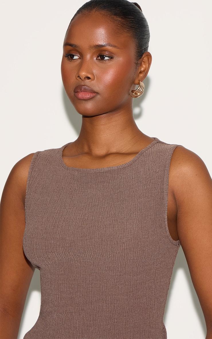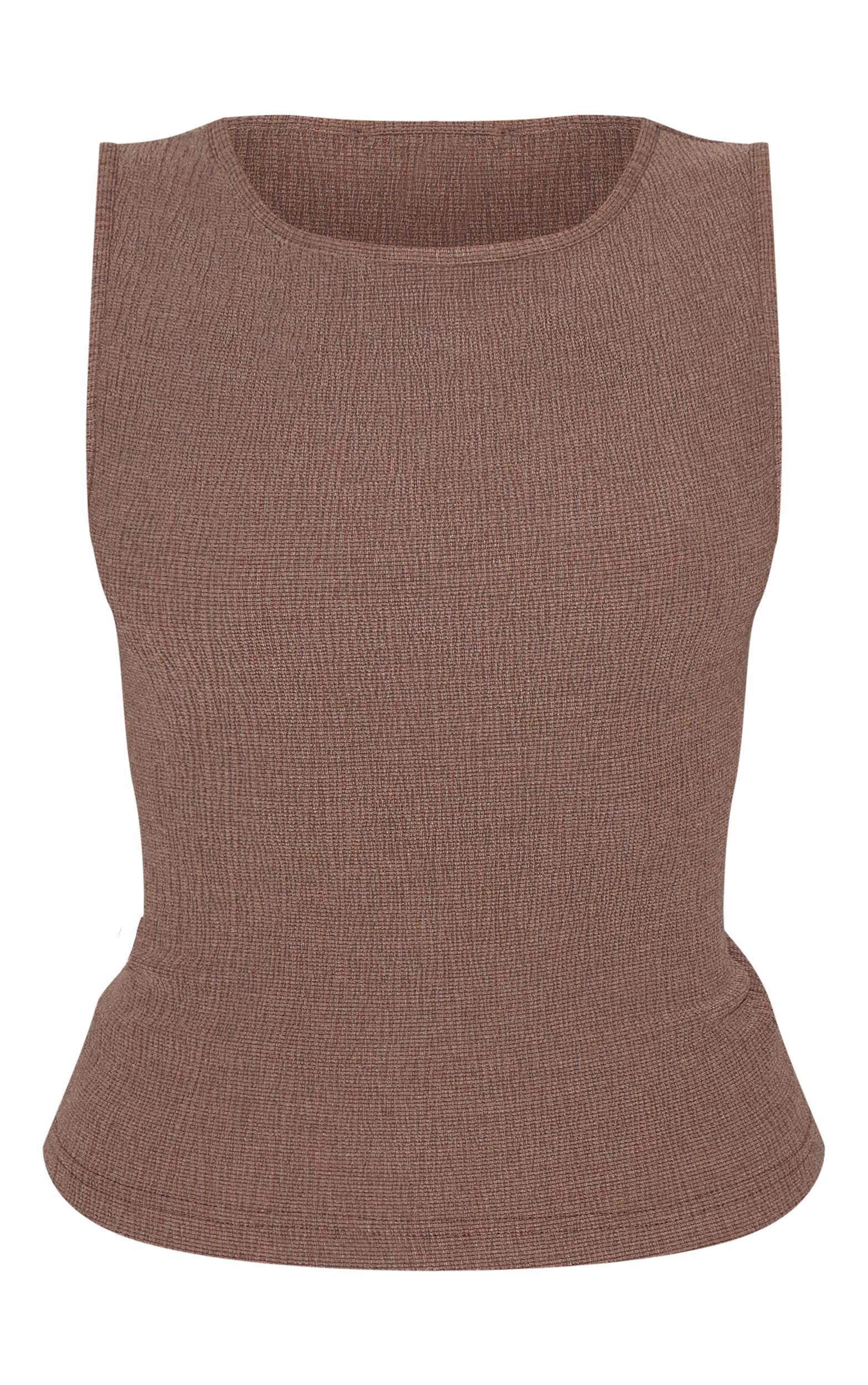 A foundational piece for polished style. This Chocolate Textured Boat Neck Sleeveless Top features a clean boat neckline that frames the upper body, paired with a sharp sleeveless cut. The top follows a defined line, creating an effortless profile ready for evening. Style this key piece with tailored high-waisted pants or a minimal mini skirt to complete the look.Length approx 48.5cm/19inch (Based on sample size US 4)Model wears size UK 8/ EU 36/ AUS 8/ US 4Model Height - 5ft 9inchp]:!mb-4inch>Brand: PrettyLittleThingCategory: TopsProduct type: Vest TopColor: ChocolateMaterial: Brushed KnitNeckline: Boat NeckSleeves: LongOccasion: Evening