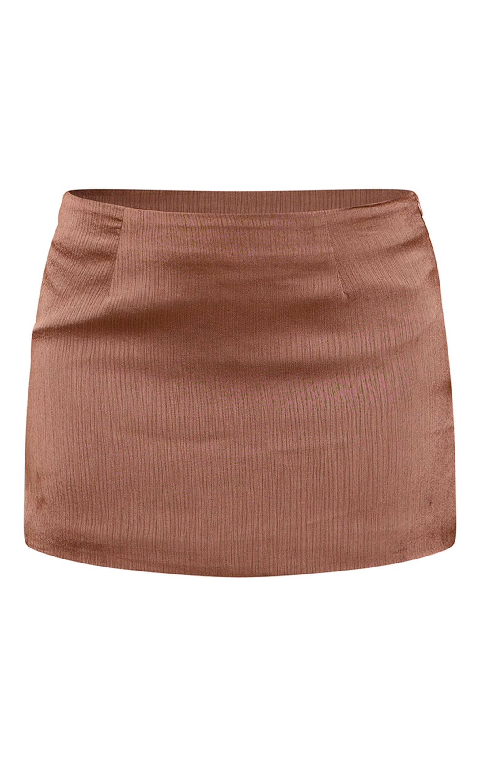 Elevate your wardrobe with the chocolate textured satin a line mini skirt. Brought to you in a chocolate textured satin fabric with an a line cut and mini length, this skirt is chic and versatile. Style with the matching fitted top and a pair of heels for a sleek evening look.Length approx 33cm/13inch (Based on sample size US 4)Model wears size UK 8/ EU 36/ AUS 8/ US 4Model Height - 5ft 7inchp]:!mb-4inch>Brand: PrettyLittleThingCategory: BottomsProduct type: Mini SkirtColor: ChocolateMaterial: Tailored WovenDesign: PlainOccasion: Day