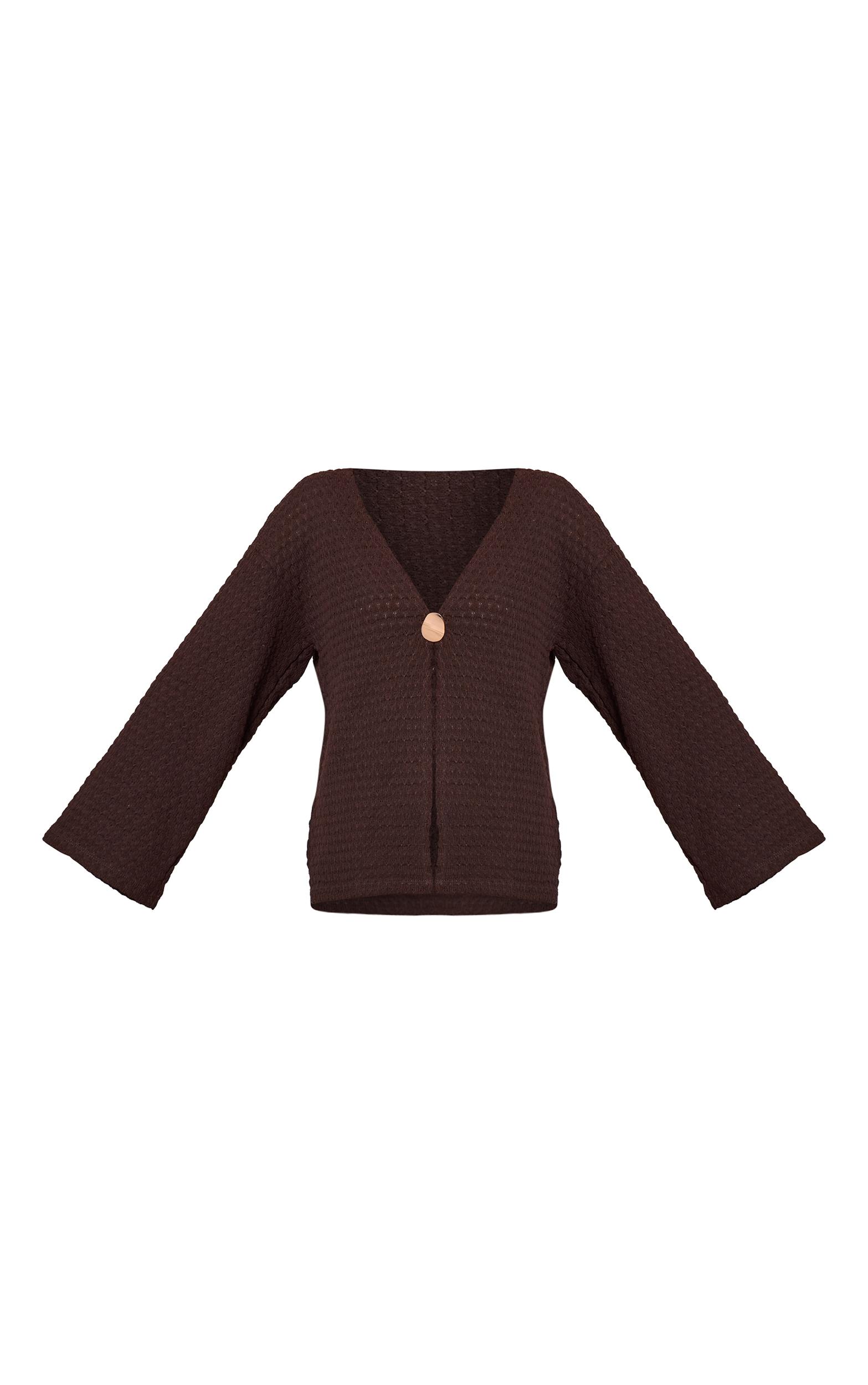 Stay bold in the chocolate textured trim detail oversized long sleeve top. Made from a chocolate textured material, it features trim detailing, an oversized cut, and long sleeves. Pair with kitten heels and gold earrings for an effortlessly chic finish.Length approx 48.5cm/19inch (Based on sample size US 4)Model wears size UK 8/ EU 36/ AUS 8/ US 4Model Height - 5ft 7inchp]:!mb-4inch>Category: TopsProduct type: BlouseColor: ChocolateMaterial: Textured JerseyOccasion: Day